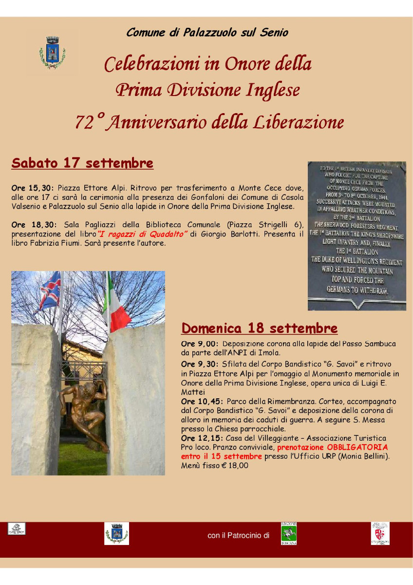 Valsenio e Palazzuolo sul Senio alla lapide in Onore della Prima Divisione Inglese.