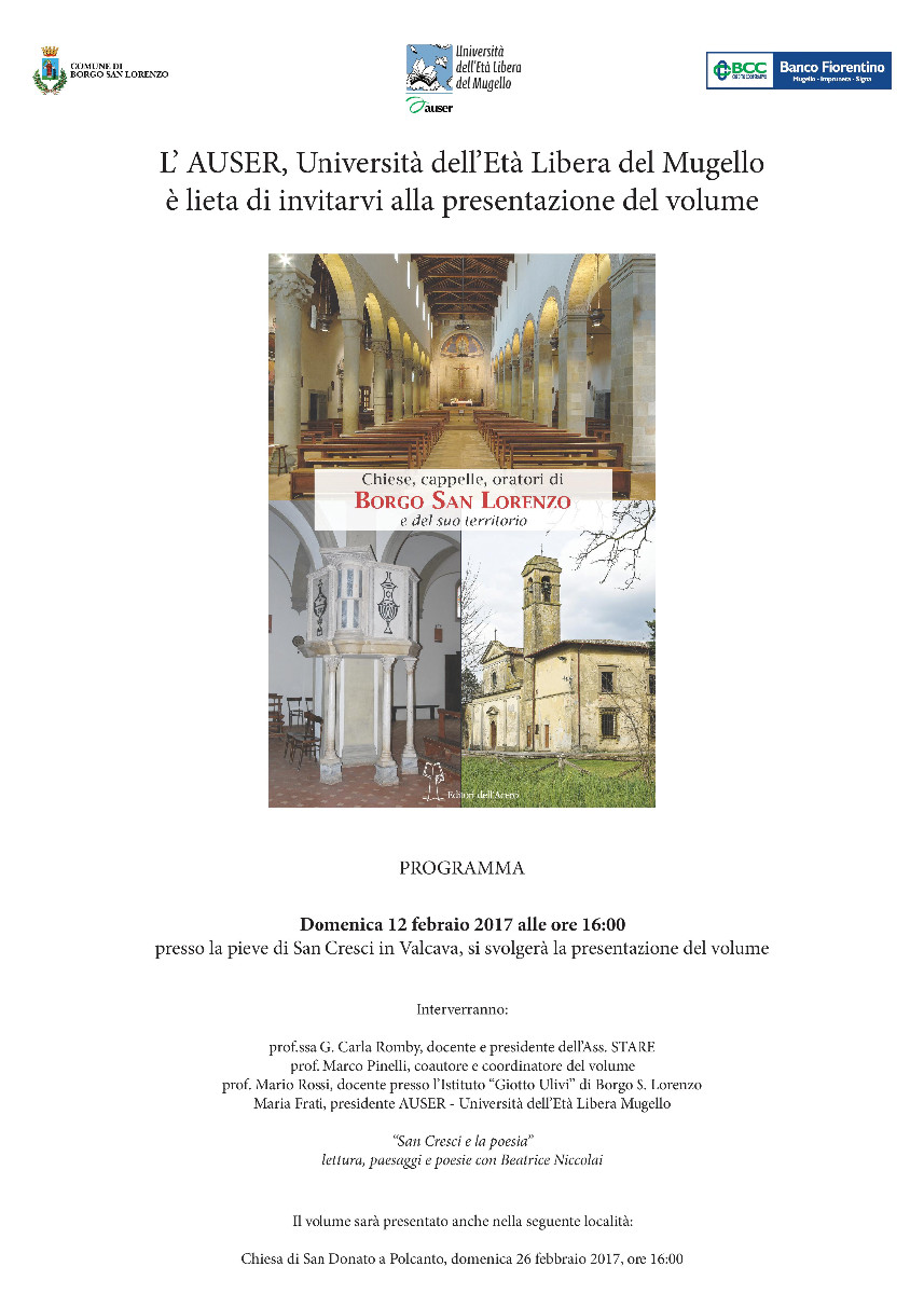 On Sunday February the 12th in the church of S. Cresci in Valcava will be presented the new book dedicated to the sacred architectures in Borgo San Lorenzo and the surrounding areas.
