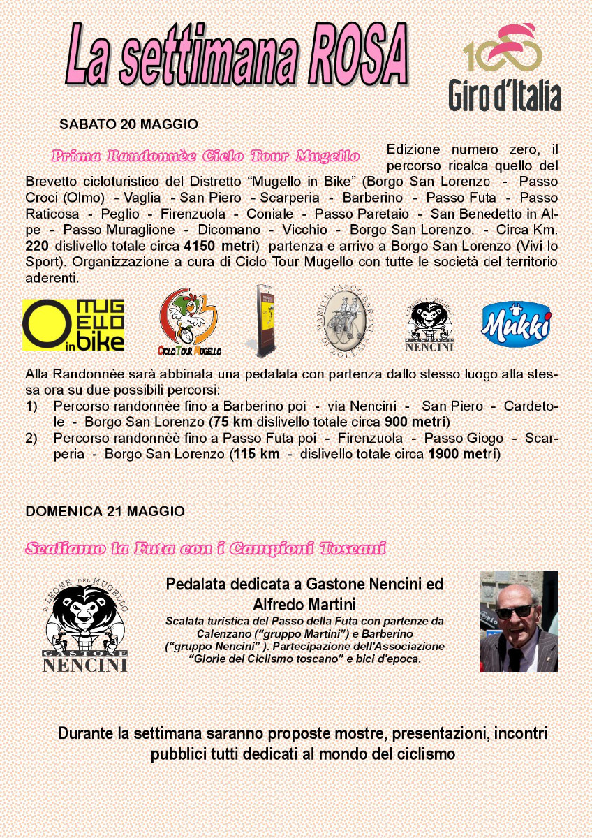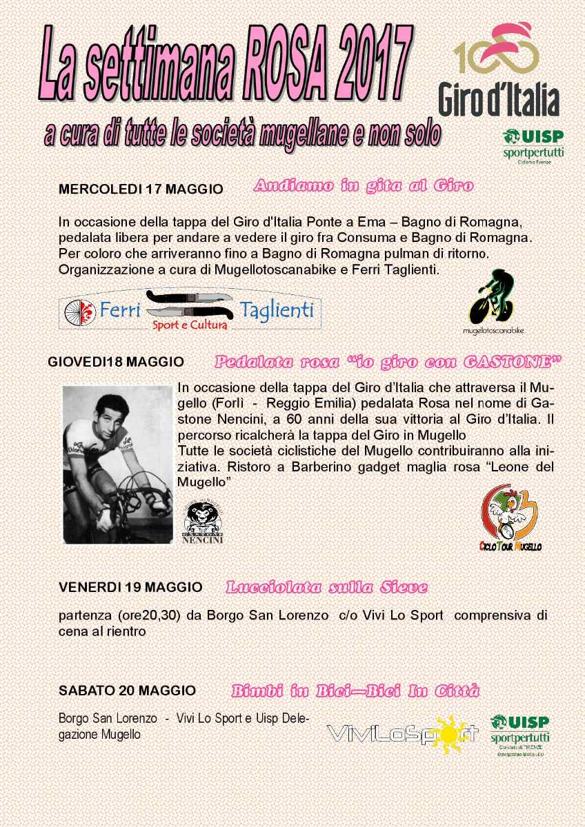 "La Settimana Rosa 2017" a cura delle società sportive mugellane e non soloPedalata rosa “io giro con GASTONE”