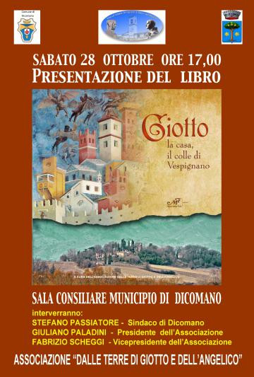 L'Associazione dalle terre di Giotto e dell'Angelico presenta, sabato 28 ottobre alle ore 17 presso la sala consiliare di Dicomano, il libro "Giotto la casa, il colle di Vespignano" .