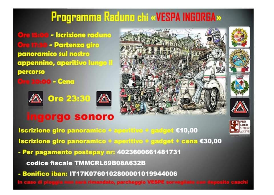 SABATO 7 LUGLIO 2018 IL VESPA CLUB 50037 ORGANIZZA IL RADUNO (CHI VESPA INGORGA) UNA FESTA PER TUTTI I VESPISTI,