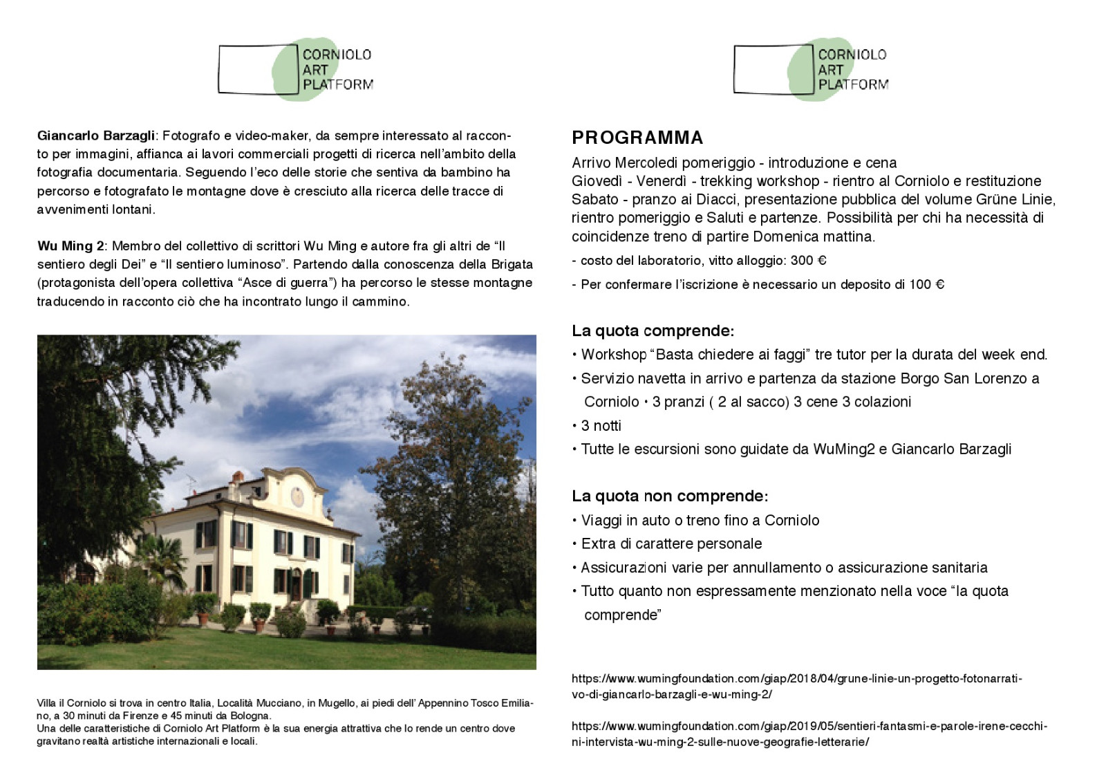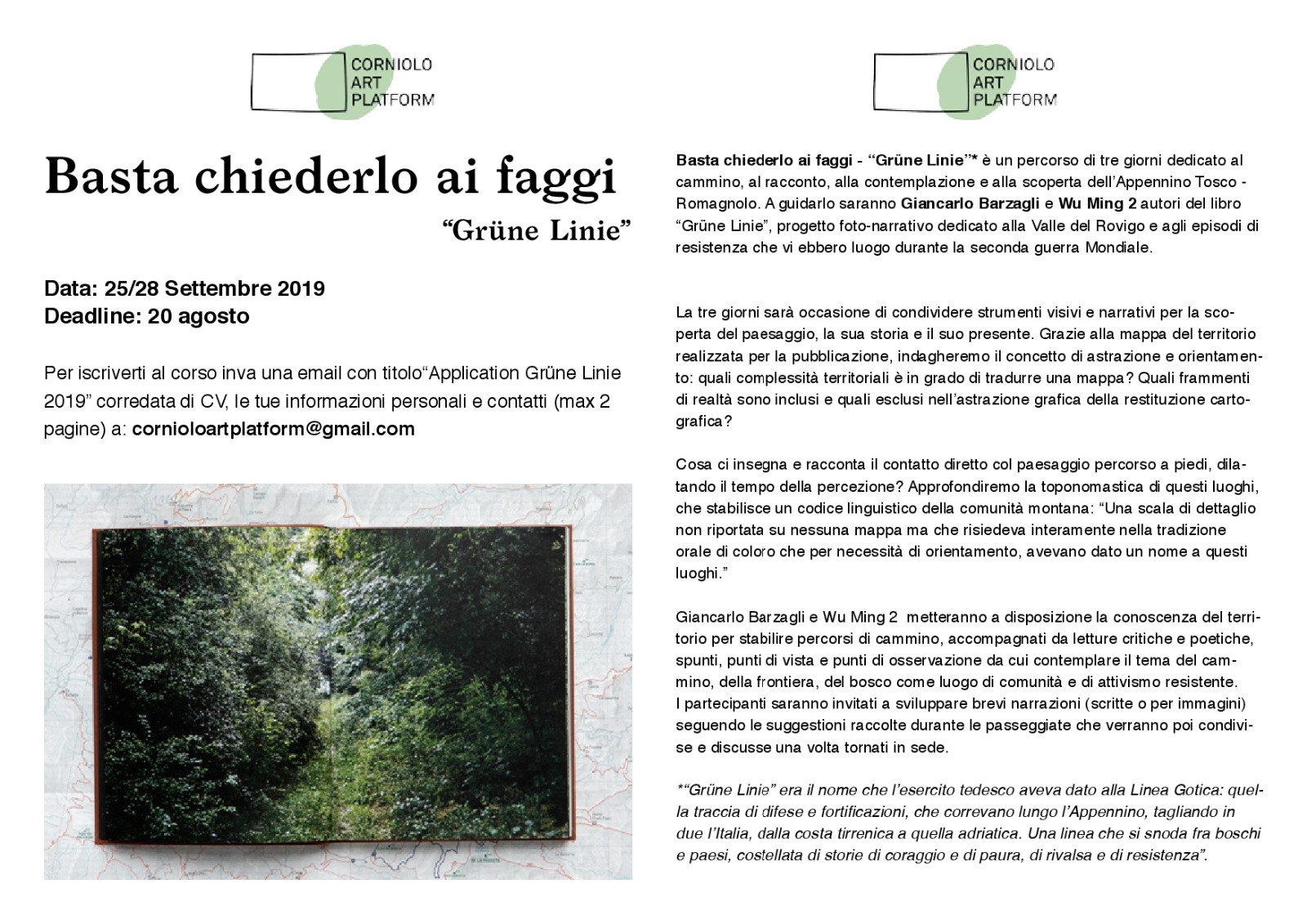 Per iscriversi inviare una mail a cornioloartplatform@gmail.com con oggetto: "Application Grune Linie 2019" corredata di CV e informazioni personali