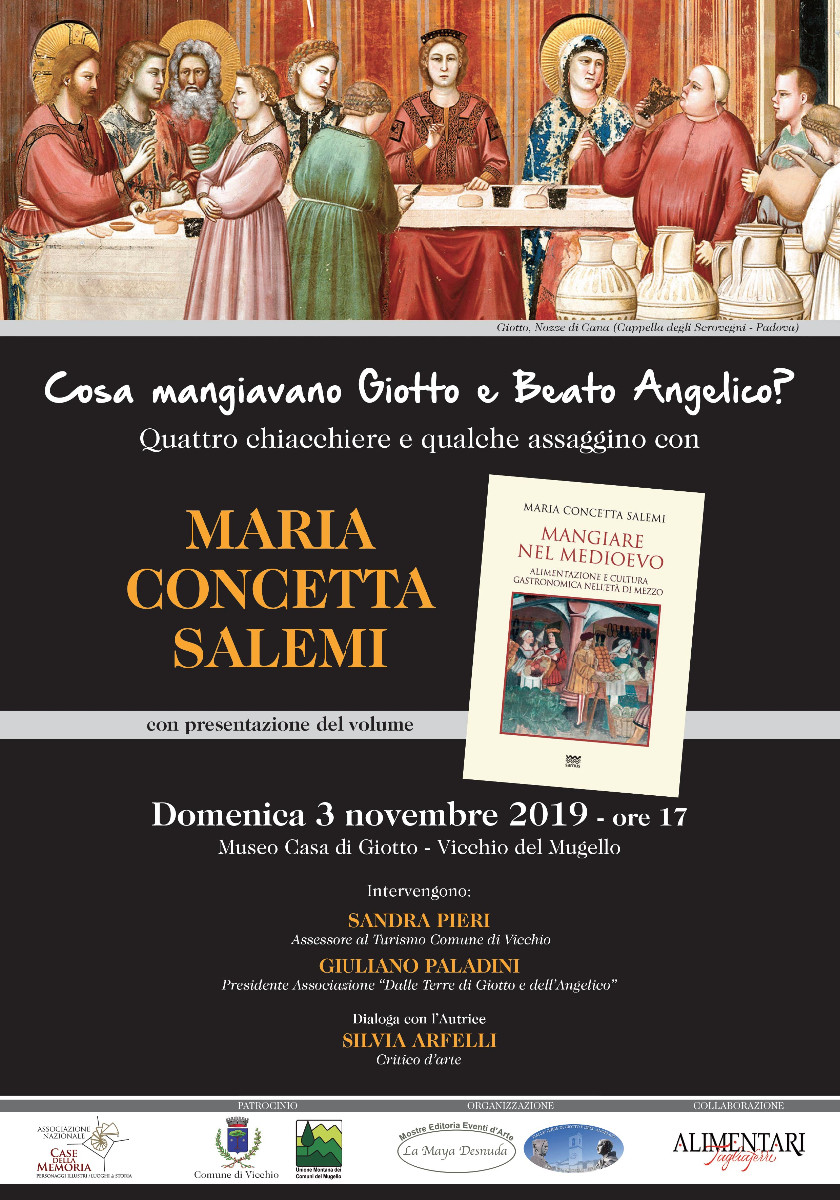 presso la Casa di Giotto si terrà la presentazione del libro “Mangiare nel Medioevo - Alimentazione e cultura gastronomica nell'età di mezzo” di Maria Concetta Salemi. Dialogherà con l'autrice il critico d'arte Silvia Arfelli.