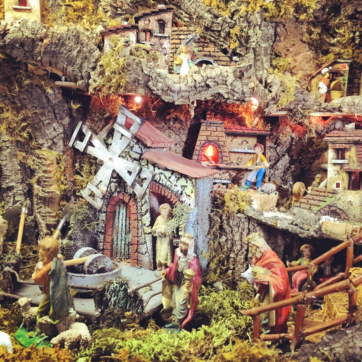 Suggestivo presepe con particolareggiate ricostruzioni di paesaggi, personaggi in movimento e l’alternarsi del giorno e della notte.