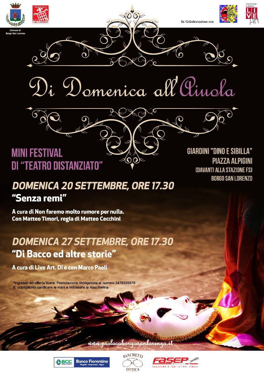 “Di domenica all’aiuola” organizzata dalla Pro Loco di Borgo San Lorenzo, e che vanta il patrocinio del Comune, nasce in un momento storico importante e molto particolare, dopo che la pandemia ha colpito il mondo dei lavoratori della cultura i quali sono stati tra le categorie più danneggiate e che, in un panorama di forte mobilitazione per il mondo della cultura, vuol sensibilizzare il pubblico su questa tematica. Questo piccolo festival di “teatro distanziato” è, infondo, anche un primo esperimento di iniziative che in futuro potranno svolgersi all’aiuola di questo particolarissimo giardino.