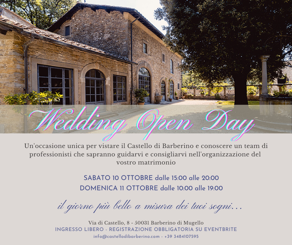 Un'occasione unica per visitare il Castello di Barberino e conoscere un team di professionistiche sapranno guidarvi e consigliarvi nell'organizzazione del vostro matrimonio.