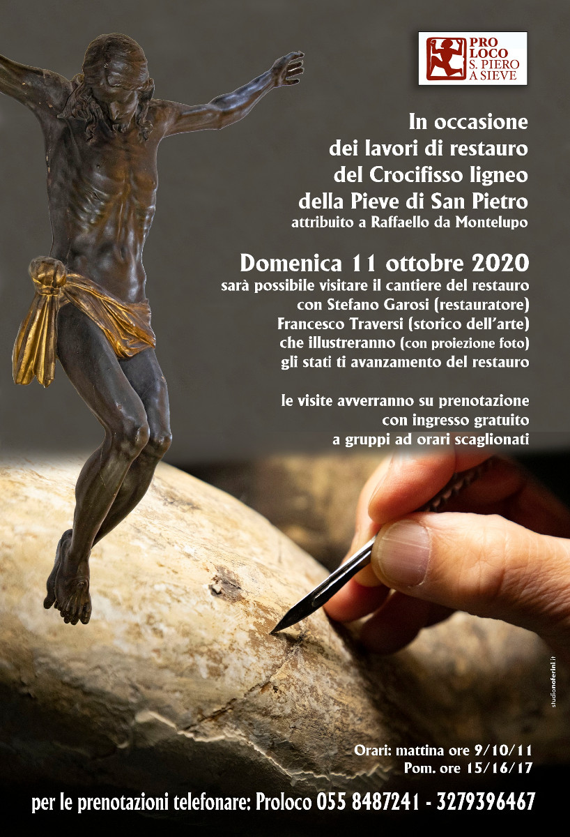 E ci sarà anche un altro evento culturale di rilievo nel corso della giornata, e proprio al centro della manifestazione: in occasione dei lavori di restauro del Crocifisso ligneo della Pieve di San Pietro, attribuito a Raffaello da Montelupo, il restauratore Stefano Garosi e lo storico dell’arte Francesco Traversi, faranno da guide al cantiere del restauro, accompagnato anche da una proiezione di foto di Francesco Noferini, che illustrerà gli stati di avanzamento del lavoro. Le visite, previste alle 9, 10, 11, 15, 16 e 17, avverranno su prenotazione (0558487241 o 3279396467) con ingresso gratuito a gruppi con orari scaglionati.