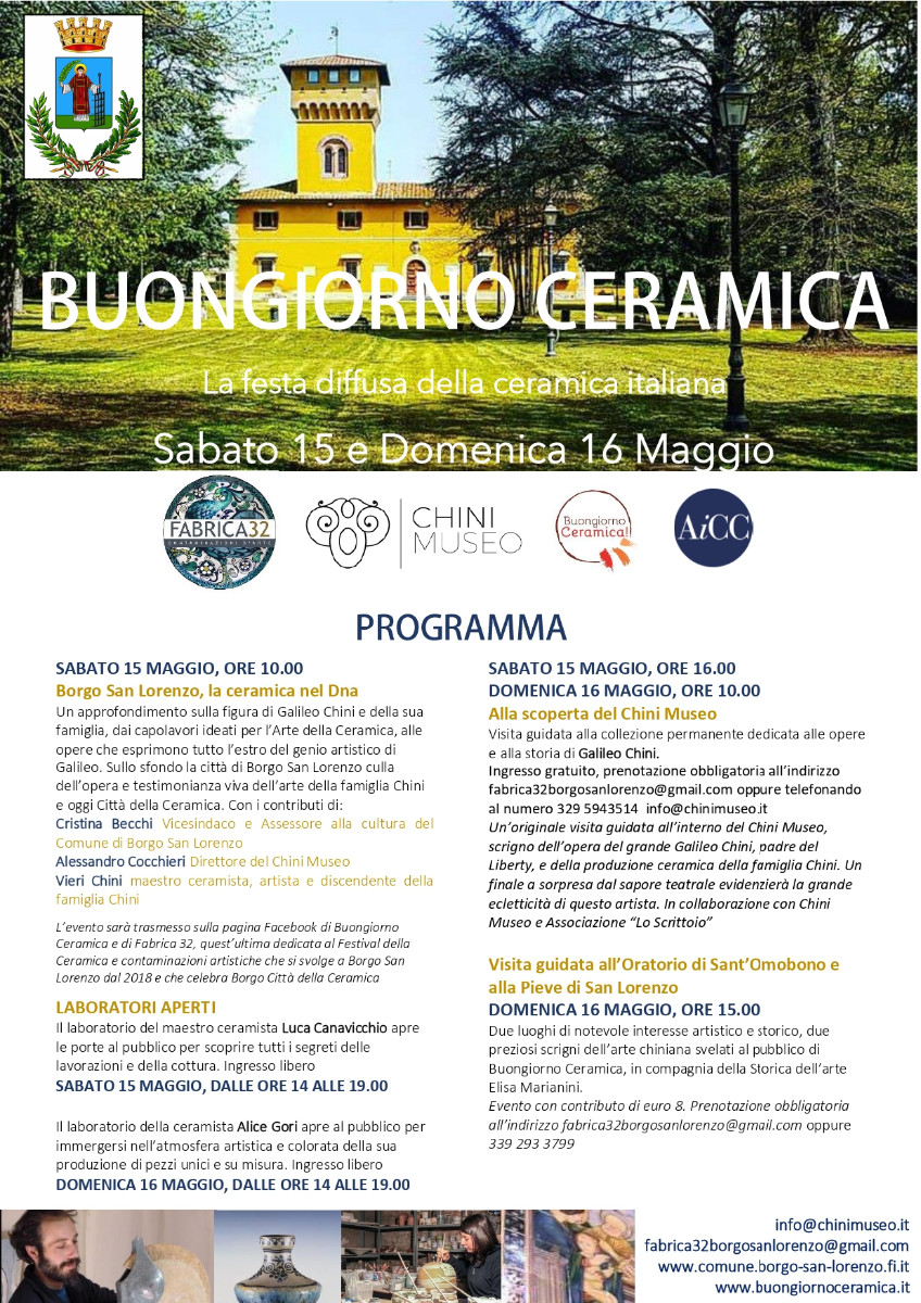 Info and reservations: info@chinimuseo.it, fabrica32borgosanlorenzo@gmail.com , www.comune.borgo-san-lorenzo.fi.it , www.buongiornoceramica.it