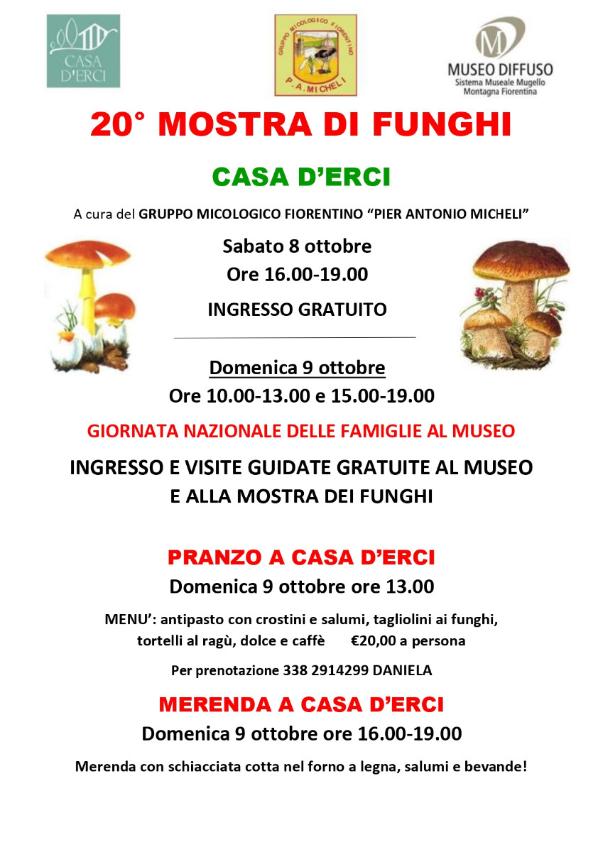 The 20th edition of mushrooms exhibit at Casa d'Erci Museum on saturday 8th and sunday 9th october 2022