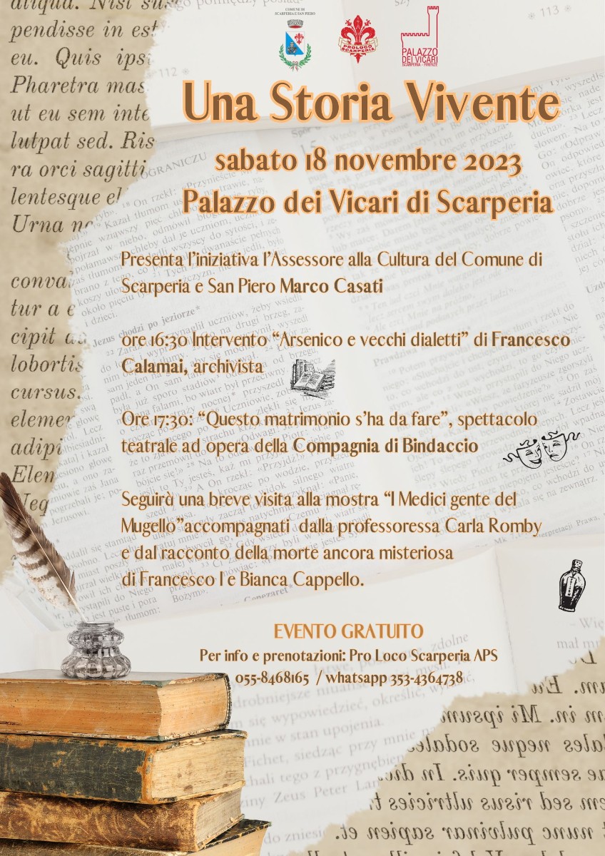 The event A Living History will be held Saturday, November 18 at 16:30 in the Salone dei tendaggi, Palazzo dei Vicari di Scarperia