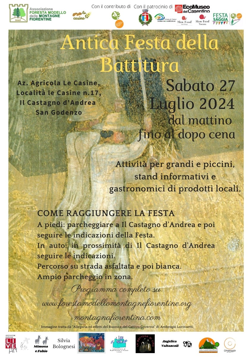 In a magnificent valley within the National Park of the Casentino Forests Monte Falterona and Campigna, on Saturday 27 July, the Festasaggia "Antica battitura del grano" (ancient wheat threshing) will take place, now in its seventh edition.