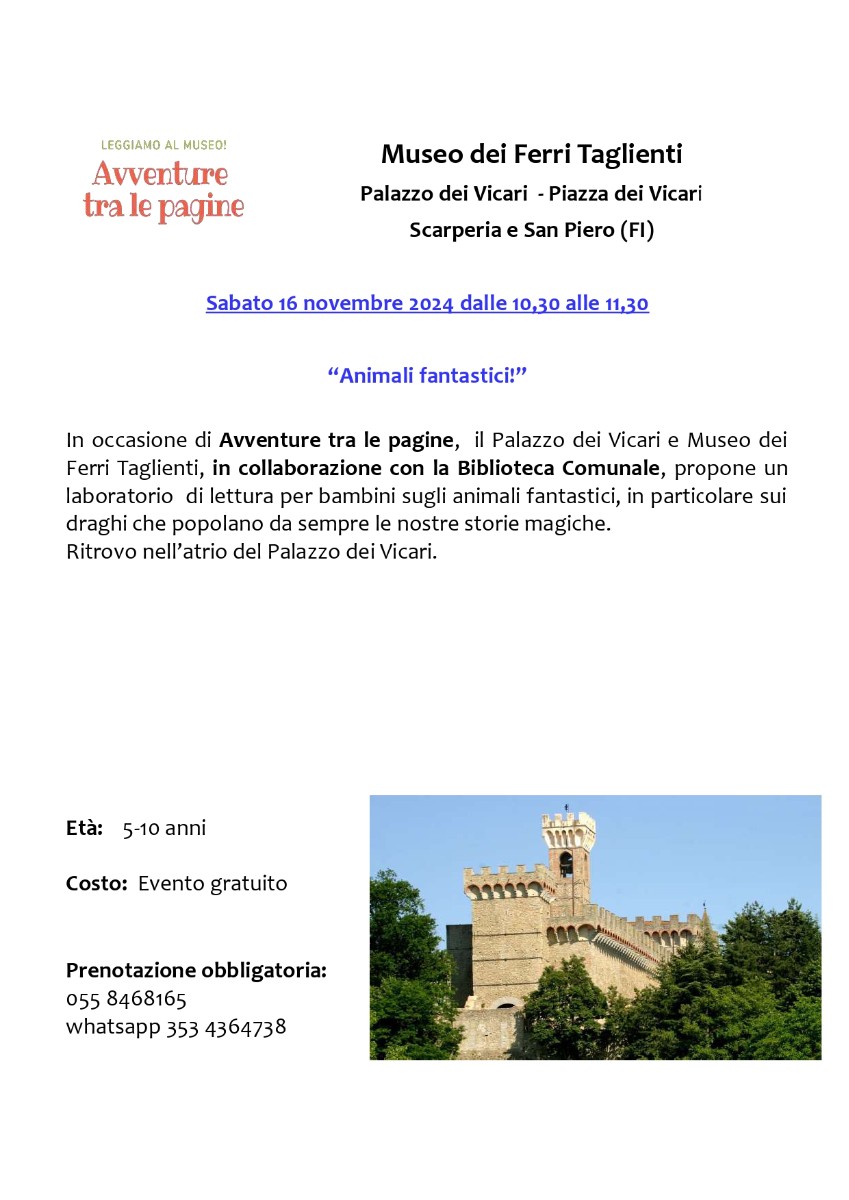 On the occasion of Adventures between the pages, the Palazzo dei Vicari and Museo dei Ferri Taglienti, in collaboration with the Municipal Library, offers a reading workshop for children on fantastic animals, in particular dragons that have always populated our magical stories.