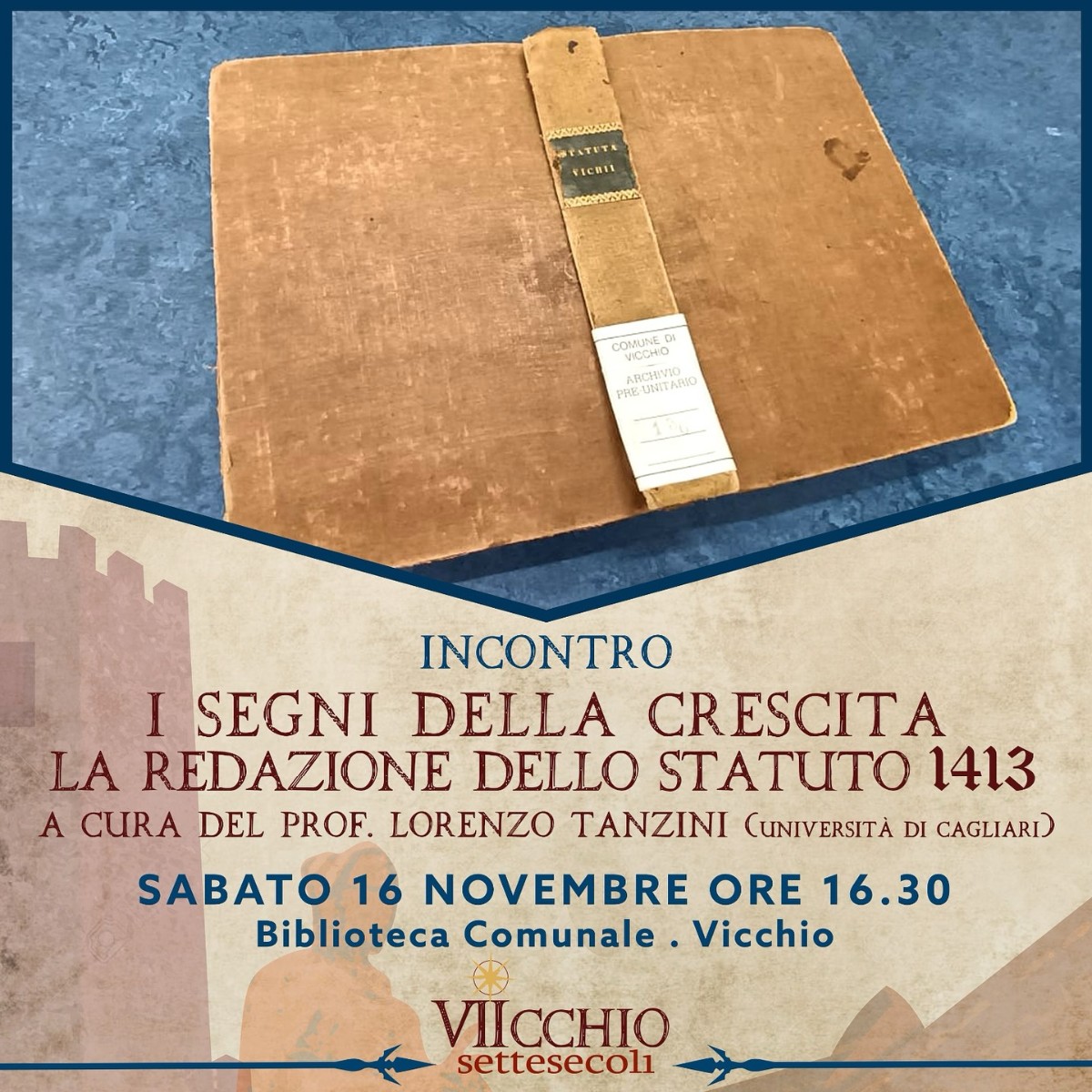 Saturday 16 November at 4.30 p.m. in the library with Prof. Tanzini (Univ. Cagliari), topic: ‘The signs of growth. The drafting of the 1413 statute'.