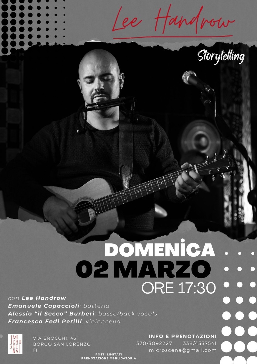 Microscena's intimate stage hosts Lee Handrow, a songwriter with a Folk/Rock heart, fresh from a successful tour in London. His songs, suspended between American roots and modern sounds, offer an authentic and profound musical experience.