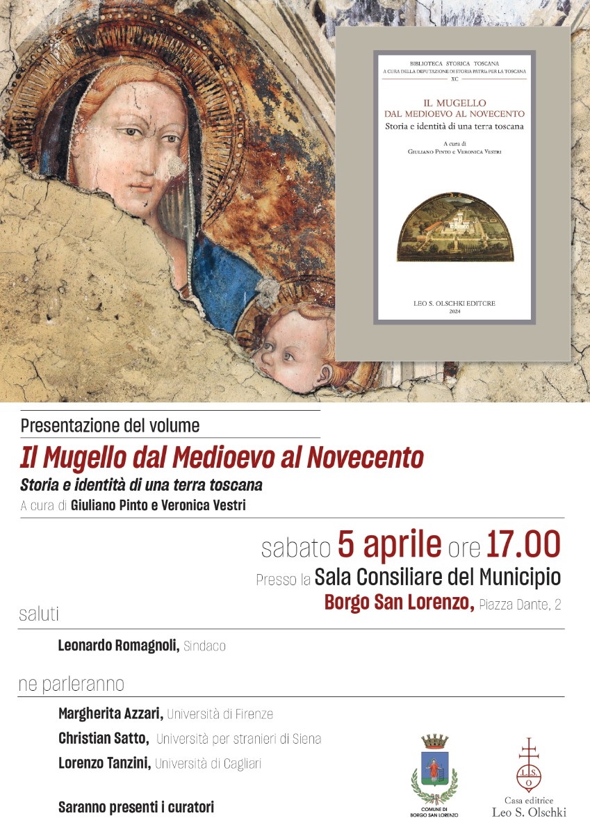 Saturday 5 April at 5 p.m., in the Council Chamber of the Borgo San Lorenzo Municipality, there will be the presentation of the book Il Mugello dal Medioevo al Novecento. Storia e identità di una terra toscana, published by Leo S. Olschki Editore and edited by Giuliano Pinto and Veronica Vestri, who will be present at the event.