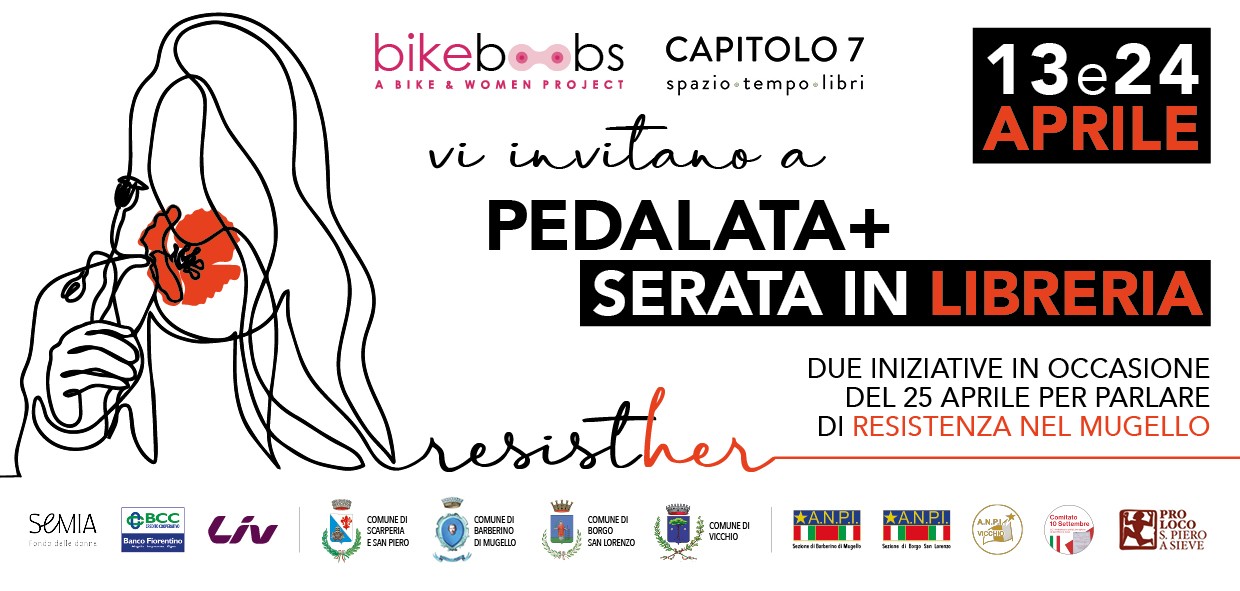 Interventions by Libreria Capitolo 7, Bikeboobs Asd Aps, ANPI Borgo San Lorenzo, ANPI Barberino di Mugello, ANPI Vicchio, Comitato 10 Settembre. The initiative is sponsored by the municipalities of Barberino di Mugello, Borgo San Lorenzo, Scarperia and San Piero, Vicchio and is made possible thanks to the contribution of Semia - Fondo delle Donne, the first Italian feminist fund created to support the organisations, groups, collectives and activists that work every day in our communities to make communities to make Italy a more inclusive country for girls, women, trans and non-binary people.