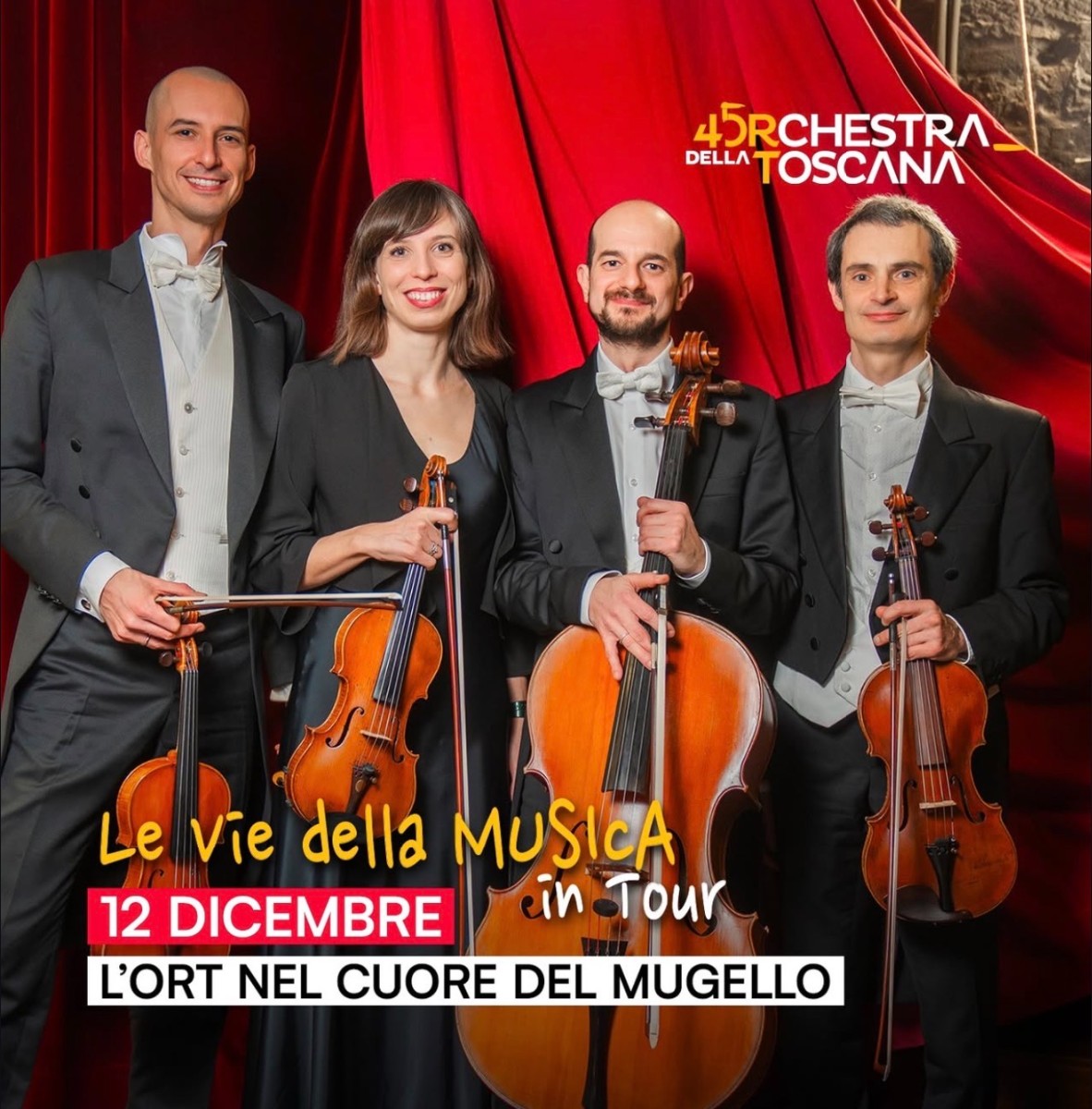 Il Quartetto dell'ORT arriva, venerdì 12 dicembre 2025 alle ore 21:00, al pubblico del Mugello con un concerto speciale ospitato nell'Oratorio di Sant'Omobono a Borgo San Lorenzo, nell'ambito dell'iniziativa Le Vie della Musica in Tour