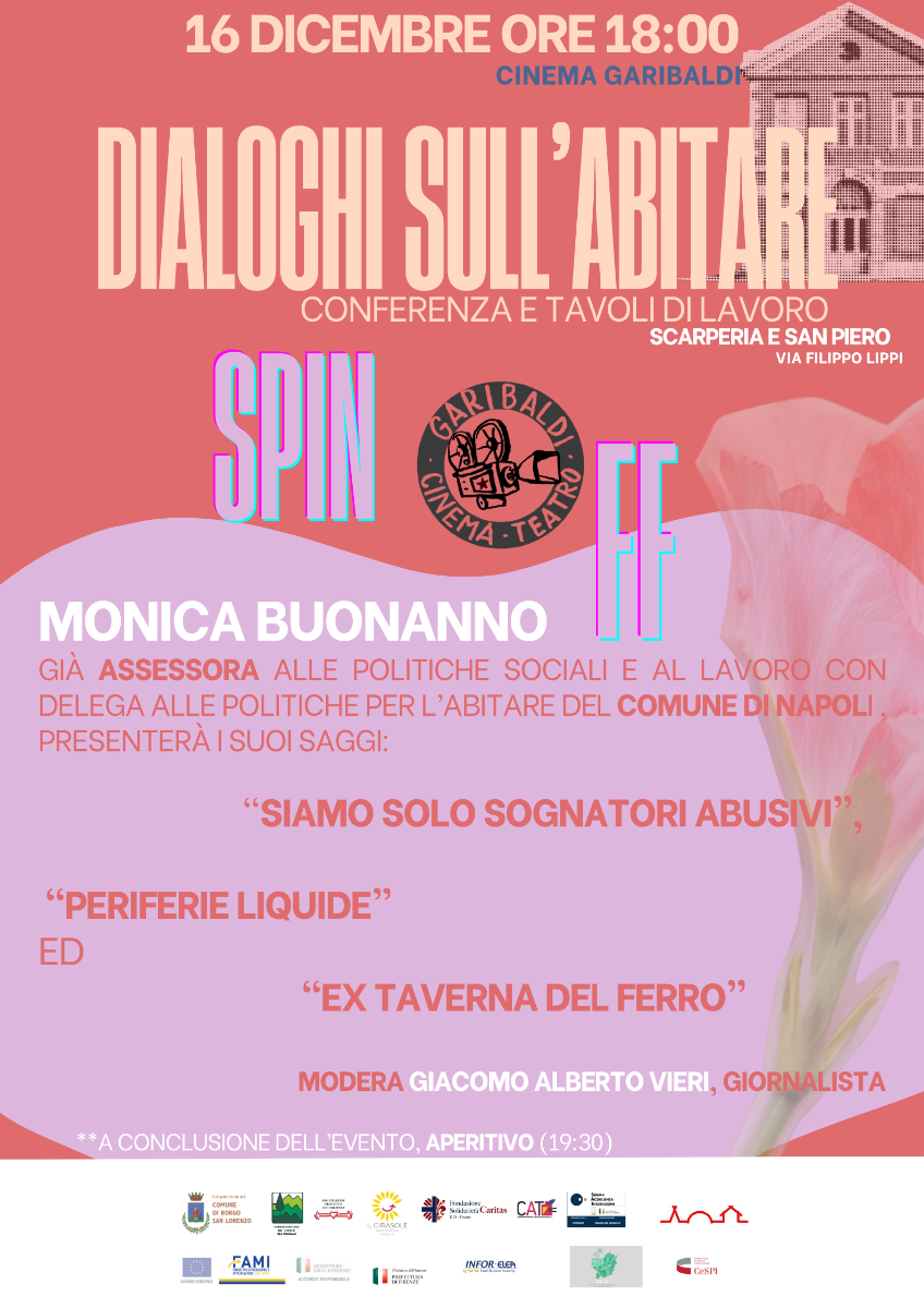 18:00 In conversazione con Monica Buonanno, già Assessora alle Politiche sociali e al Lavoro con delega alle Politiche per l’Abitare del Comune di Napoli. L’autrice presenterà i suoi saggi: “Siamo Solo Sognatori Abusivi”, “Periferie Liquide” ed “Ex Taverna del Ferro”. Con lei, il giornalista Giacomo Alberto Vieri.