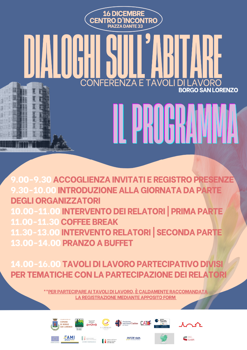 Si terrà martedì 16 dicembre, dalle 9:00 fino alle 19:30, tra il Centro d’incontro a Borgo San Lorenzo e il Cinema Garibaldi a Scarperia, l’intera giornata organizzata e promossa dal Comune di Borgo San Lorenzo con SAI UMCM | Unione Montana dei Comuni del Mugello, e G.I.G.L.I.O | Governance Integrazione: garantire l’inclusività orizzontale, il progetto della Prefettura di Firenze realizzato con fondi FAMI 2021 – 2027, dedicata al tema abitativo. Con un parterre di ospiti e relatori provenienti da tutto il territorio nazionale, che porteranno nel Mugello l’esperienza e le testimonianze di buone pratiche e pilot projects di contrasto alla marginalità e all’emergenza abitativa, l’obiettivo della manifestazione sarà – per l’appunto – quello di accendere un faro su una tematica mai come oggi tanto centrale ed urgente: la casa. In una fase storica segnato da forti trasformazioni sociali ed economiche, l’emergenza abitativa nei territori come il Mugello merita di essere riportata con determinazione al centro dell’agenda pubblica. Quotidianamente, famiglie, giovani, anziani, lavoratori stagionali e non si trovano a fare i conti con la scarsità di alloggi accessibili, con affitti in crescita e con un patrimonio edilizio che necessita di interventi strutturali e di politiche mirate. Housing sociale, riqualificazione dell’esistente, incentivi per favorire l’accesso alla casa delle fasce più fragili sono soltanto alcuni degli obiettivi, a medio – lungo termine, che le agende pubbliche potrebbero garantire, contribuendo ad arricchire le potenzialità del territorio locale, ricco di opportunità ma comunque esposto alle complesse dinamiche tipiche delle aree interne. Così, nell’intera giornata del 16 dicembre, attraverso conferenze, tavoli di lavoro e uno spin-off letterario - saggistico, si darà avvio ad un dialogo partecipativo, provando a delineare una time -line di interventi e priorità così da costruire insieme un percorso collettivo su un bene comune.
