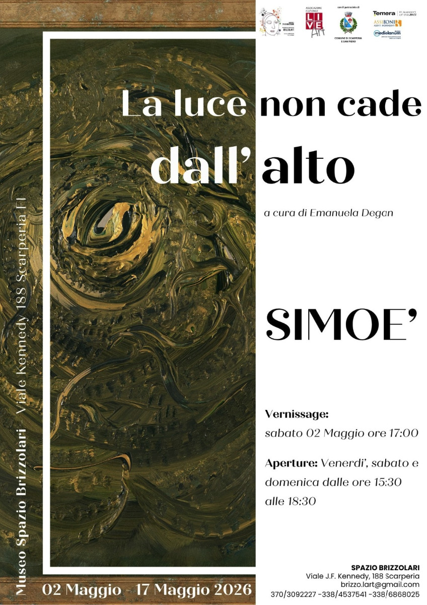 At the Spazio Brizzolari, a solo exhibition by a Florentine painter born in 1938: forty works, twenty years of research, and a light that does not fall from above, but emerges from within. Exhibition curated by Emanuela Degan. There is a light that does not illuminate things from the outside, but inhabits them from within. This is the discovery awaiting visitors to the Spazio Brizzolari Museum in Scarperia and San Piero, where on Saturday, May 2nd at 5:00 pm, "Light Does Not Fall From Above" opens, a solo exhibition by Simoè, a Florentine artist born in 1938. With approximately forty works created over the course of twenty years, the exhibition offers a dense and coherent overview of a pictorial research that has never sought aesthetic gratification, but necessity. For Simoè, painting is not a profession: it is an existential act, a way of being in the world. Simoè's work is distinguished by a strong physical and sensorial component. His canvases, constructed through dense layers and spatula interventions, shape a language that transcends representation to enter the dimension of feeling. It's not about seeing an image, but about being traversed by an energy. "Painting is not surface but experience, gesture, presence. Each work is an open space in which the viewer is called upon to find their own emotional connection." Archetypal signs and forms recur throughout the exhibition: arches, vortices, the sea, nocturnal urban visions. These elements are not decorative, but symbolic, thresholds of passage, condensers of energy, mirrors of interiority. Each painting offers no answers, but raises questions, leaving the viewer free to interpret. Simoè's biography is itself a journey of layers. A career punctuated by experiences in Florence, Paris, the French Riviera, and Casentino, each of which has left its mark on his gaze and technique. Yet, beyond the places and the years, his painting maintains an unmistakable voice: that of someone who paints because he can't help it.