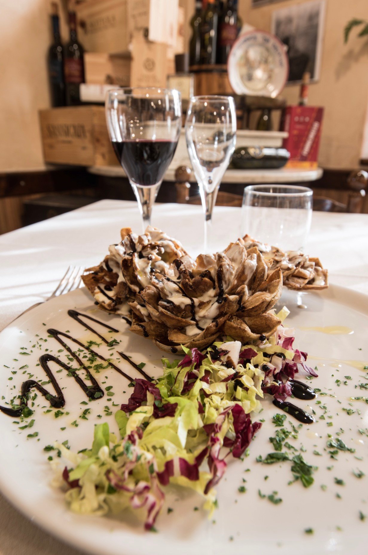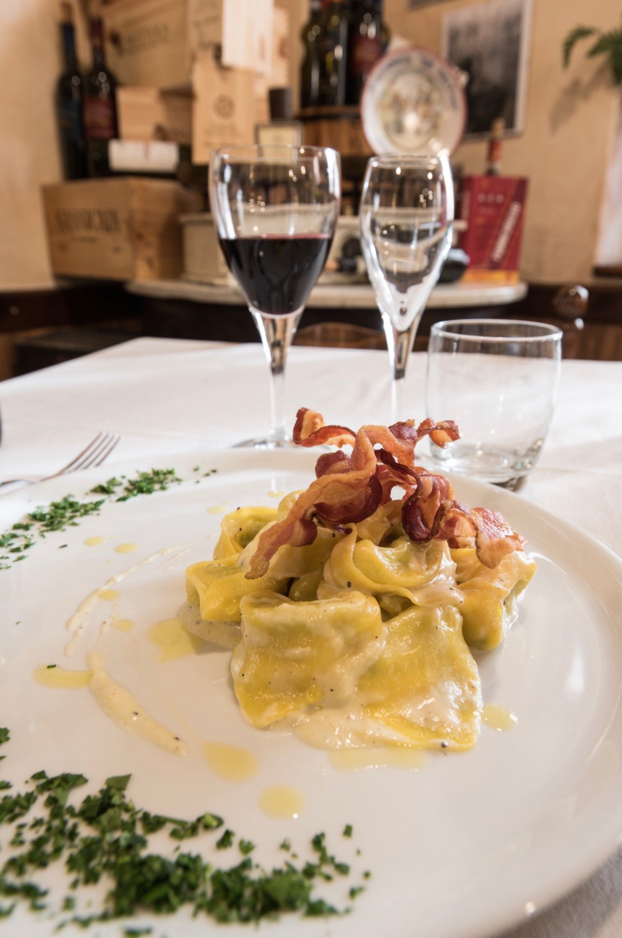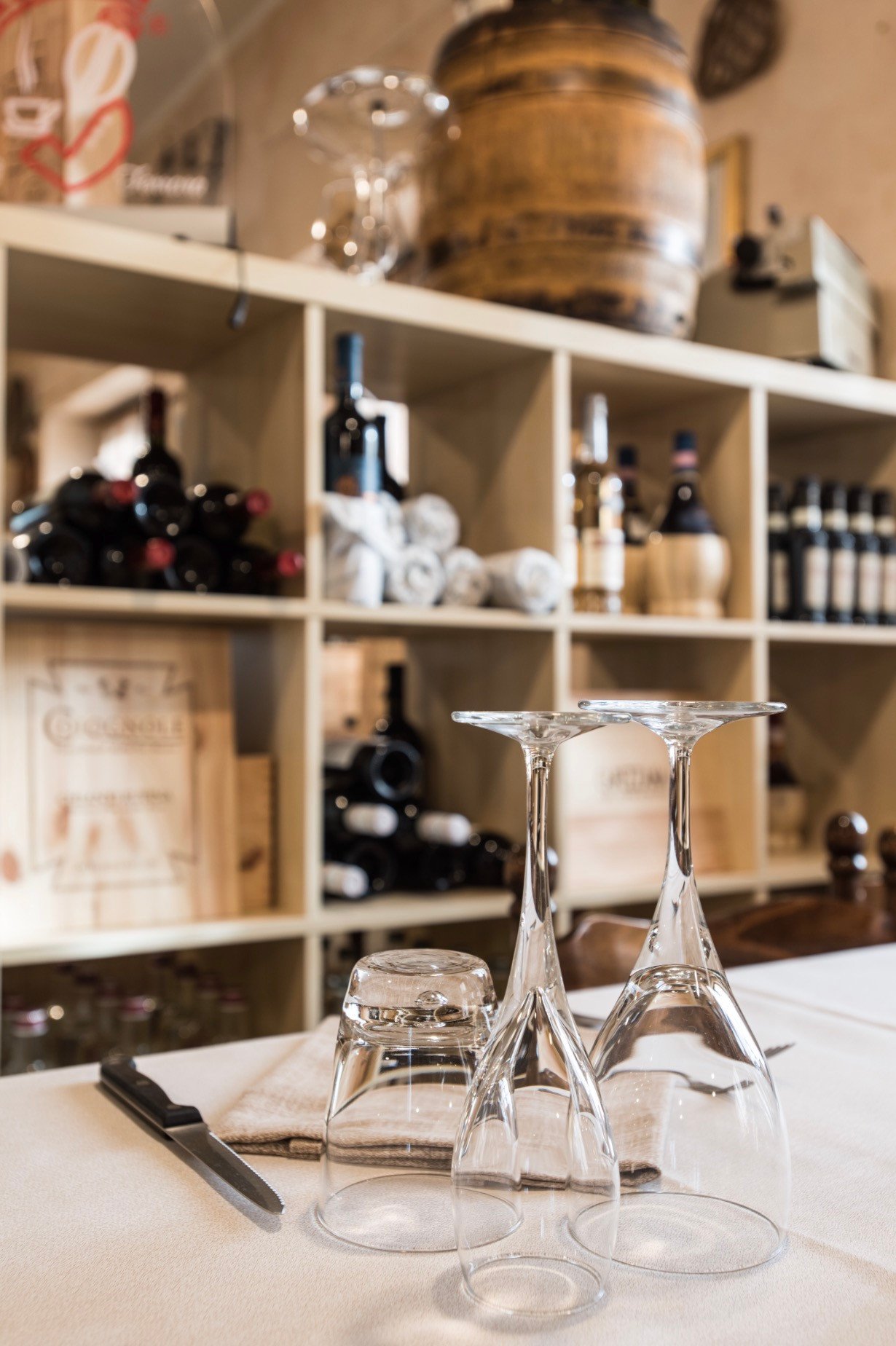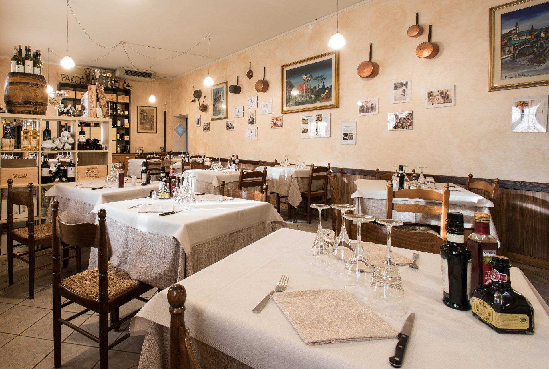 Tuscany and Romagna's cuisine, Florentine steak, grilled meat and pizza cooked in a wood burinig oven. Private parking, disabled access, open air tables, pets allowed, credit cards (except American Express) and bank card (ATM) accepted, wi-fi, historical center, n. 60 table settings, average price €27. Closed on Tuesday.