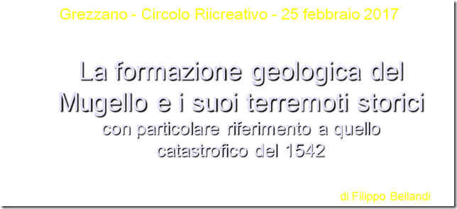 Geologia e terremoti in Mugello, con particolare riferimento a quello catastrofico del 1542, è il tema che sarà illustrato sabato 25 febbraio alle ore 21, al Circolo Ricreativo Culturale di Grezzano (presso il Campo sportivo) da Filippo Bellandi.Con videoproiezione di immagini del territorio e carte tematiche specifiche si vedrà l’origine dell’Appennino le cui rocce sedimentarie (come ad esempio la pietra serena di Firenzuola) si sono formate nel mare. Ne è testimonianza il ritrovamento diffuso ancora oggi in varie località come le Balze di Dicomano, i Prati Piani e presso Visignano in comune di Firenzuola di conchiglie fossili formatesi in ambiente marino.Si parlerà poi dello spostamento dell’Italia verso l’Adriatico con la grande faglia che divide in due l’Appennino e che è all’origine dei tanti terremoti che da sempre colpiscono la costola montagnosa della penisola, tra cui il Mugello. Ampio risalto sarà infine dedicato al disastroso terremoto che devastò il Mugello nel 1542 su cui ci sono interessanti testimonianze dell’epoca.In particolare due rarissimi instant book stampati a distanza di pochi giorni dal sisma ci permettono di rivivere, insieme alla descrizione dei morti e dei danni paese per paese, le paure e le angosce dei singoli e delle comunità, le reazioni emotive a quel disastro che era percepito soprattutto come una punizione divina per i peccati degli uomini e “segno” della imminente fine del mondo. “A terremotu libera nos domine” diventa l’invocazione disperata di oranti e di flagellanti che dal Mugello si recano in pellegrinaggio a Firenze alla Santissima Annunziata per invocare il perdono divino e la fine delle scosse.