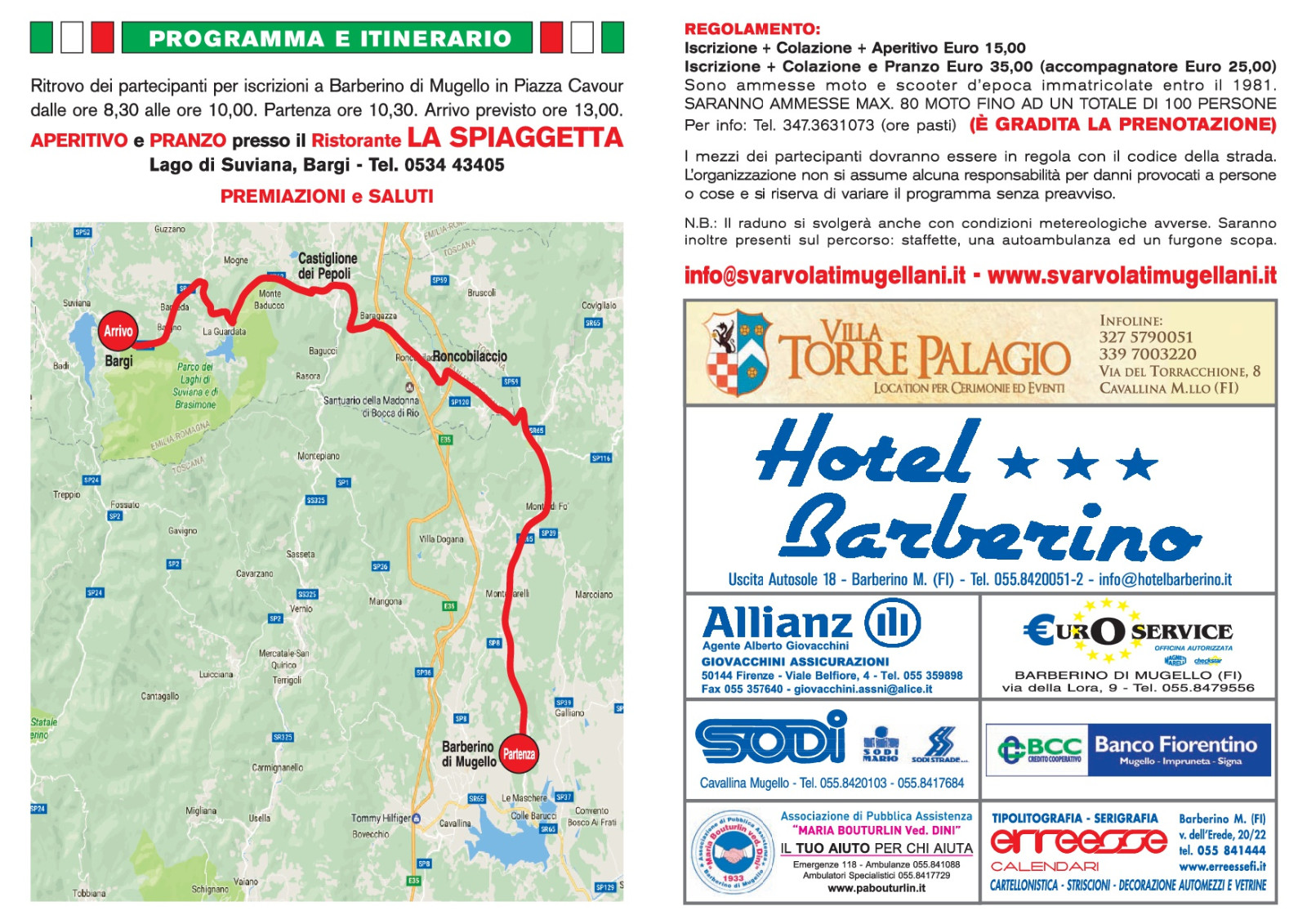 Ritrovo a Barberino di Mugello in piazza Cavour dalle ore 8.30 alle 10.00. Partenza prevista per le 10.30
