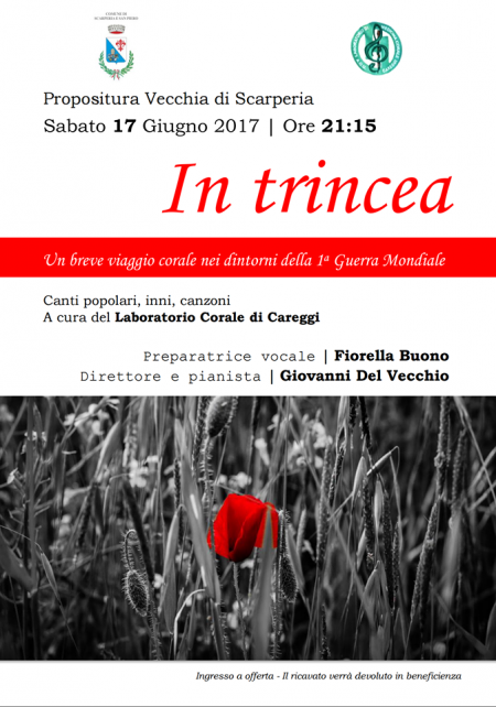 Sabato 17 giugno alle ore 21 e 15, presso la Propositura Vecchia di Scarperia si terrà un Concerto del Laboratorio Corale di Careggi dal titolo “ In trincea”.