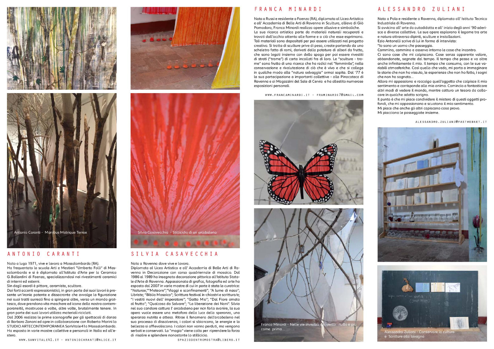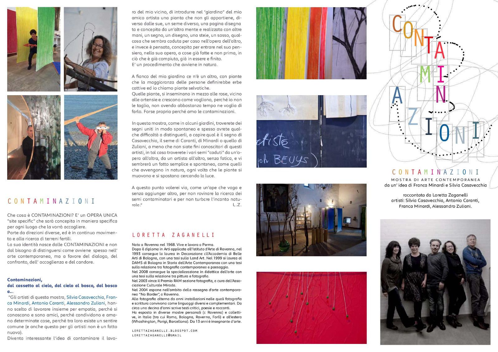 A un anno di distanza dal successo ottenuto dalla mostra a Palazzuolo sul Senio gli artisti Antonio Caranti, Silvia Casavecchia, Franca Minardi, Alessandro Zuliani saranno protagonisti con un intervento ideato appositamente per la chiesa. E' il secondo capitolo del ciclo espositivo "CONTAMINAZIONI" ideato dagli stessi artisti che produrrà una mostra insolita con un'unica opera site-specific ideata per trasformare l'ambiente religioso dalle linee rigorose in una installazione percorribile e fruibile dai visitatori per sollecitare pluralità di prospettive e focalizzare l'attenzione sul modo di vedere e sentire le cose.