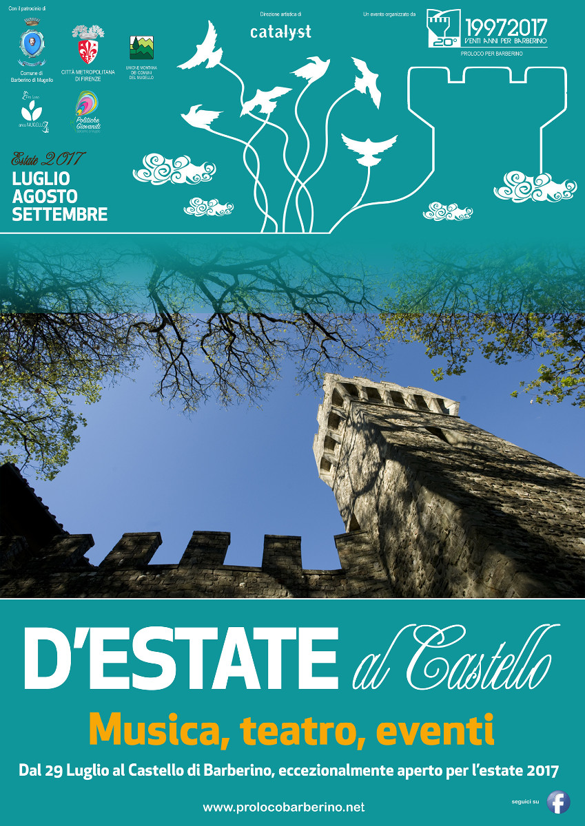 L’iniziativa “D’Estate al Castello”, realizzata grazie al contributo del Comune di Barberino e della Città Metropolitana di Firenze, è promossa dalla Pro Loco per Barberino, con la consulenza artistica di Catalyst e la collaborazione della proprietà del Castello. In tutto saranno una decina di eventi, in cinque giornate, tra concerti, spettacoli teatrali, apericene, visite guidate animate ed eventi per bambini.