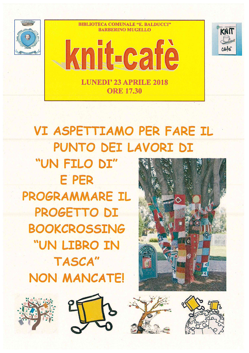 Lunedì 23 aprile alle ore 17.30, presso la Biblioteca "E. Balducci" di Barberino di Mugello appuntamento per lo knit-cafè mensile.