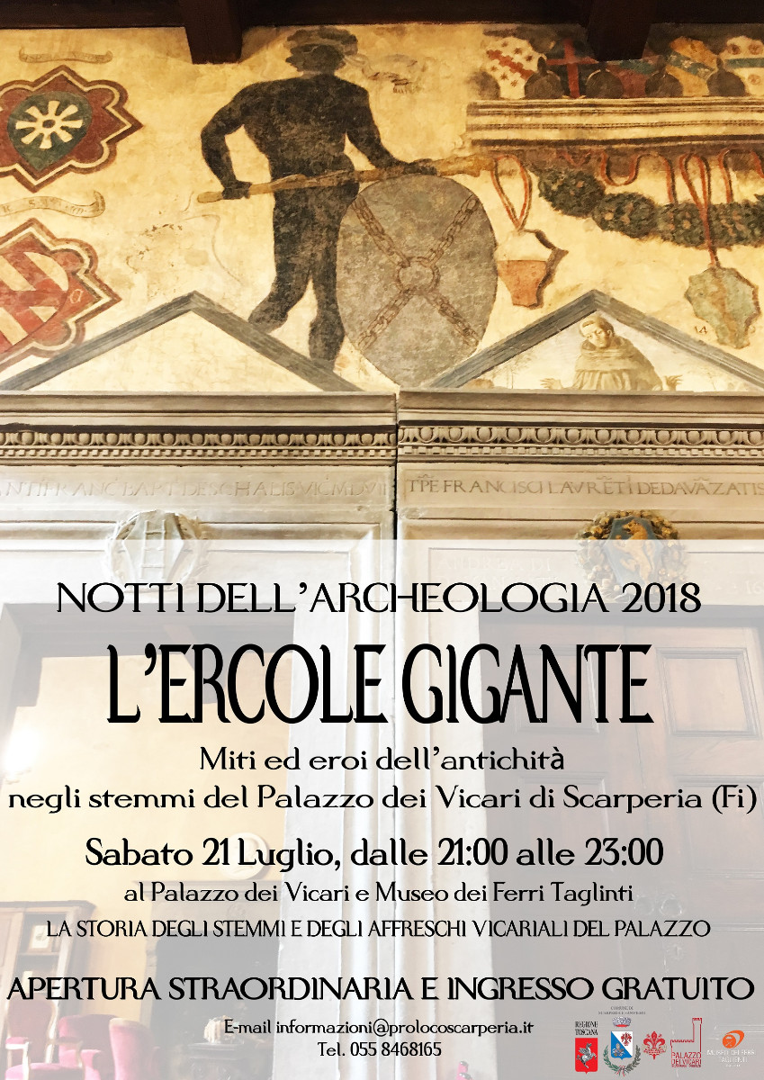 del Palazzo, approfondendone alcuni nello specifico. Tra questi, verrà illustrato quello rappresentante l’Ercole Gigante, personaggio mitico di cui si racconterà la storia che lo ha portato ad essere impresso per sempre nel palazzo trecentesco.