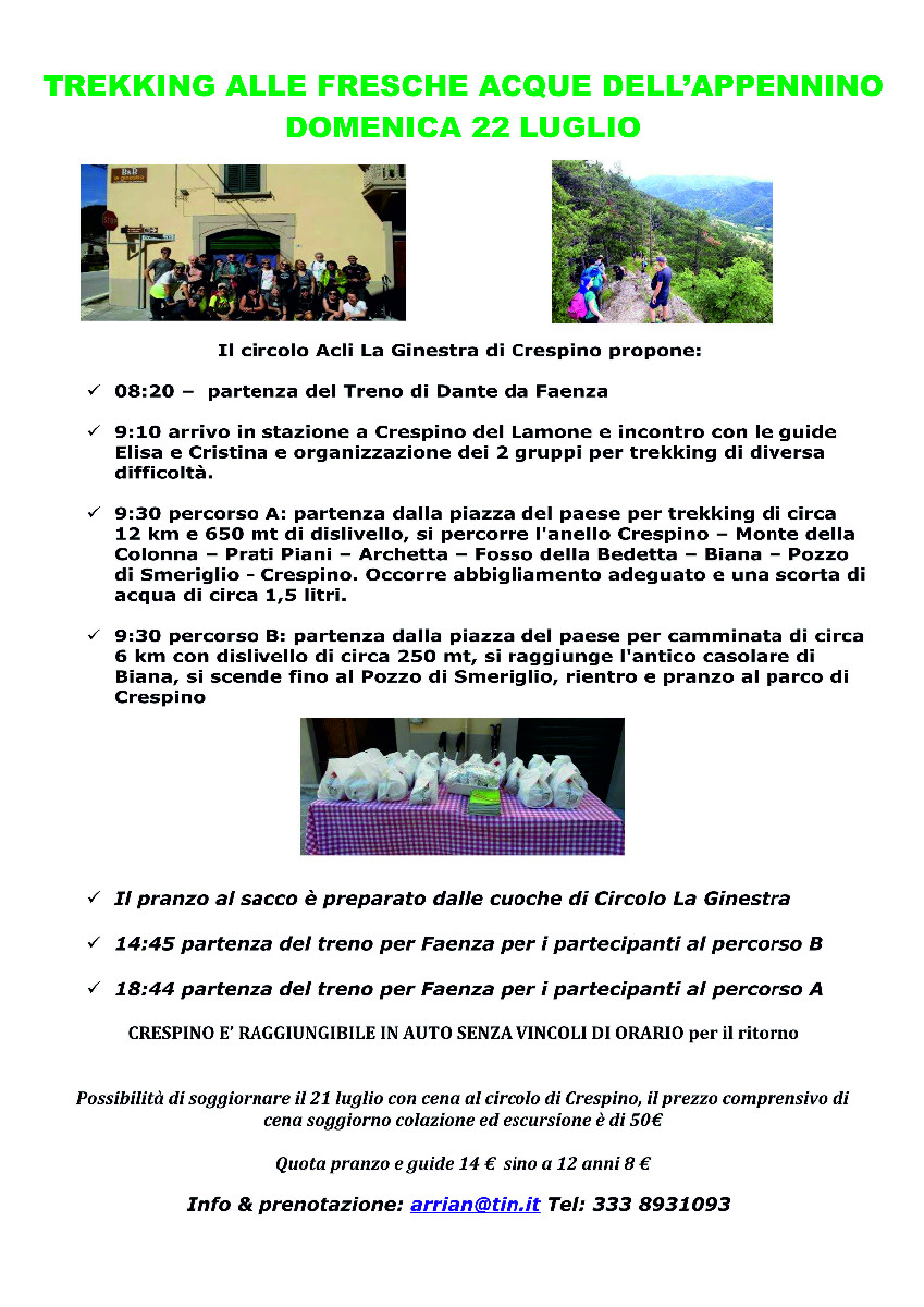 ore 9.10: ARRIVO IN STAZIONE A CRESPINO, incontro con le guide Elisa e Cristina. I partecipanti verranno divisi in due gruppi: partenza ore 9.30