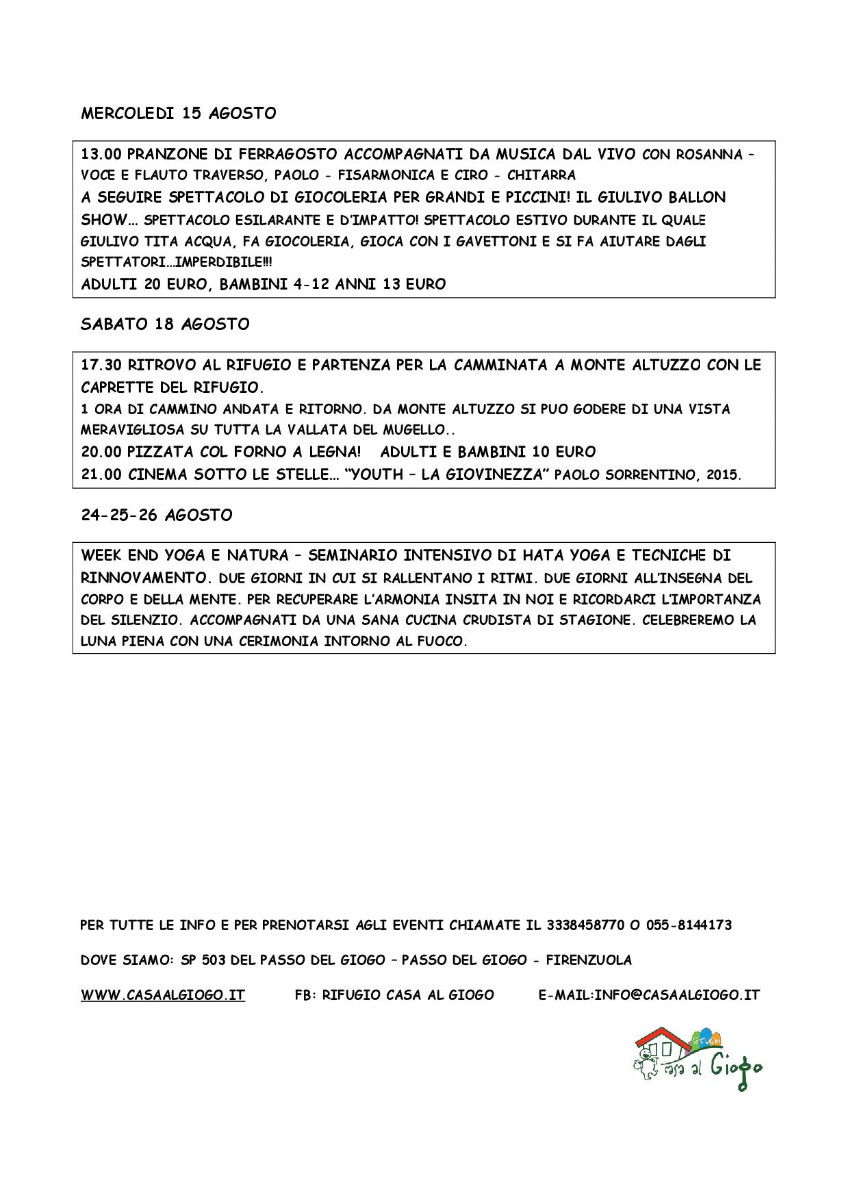 WWW.CASAALGIOGO.IT FB: RIFUGIO CASA AL GIOGO E-MAIL:INFO@CASAALGIOGO.IT