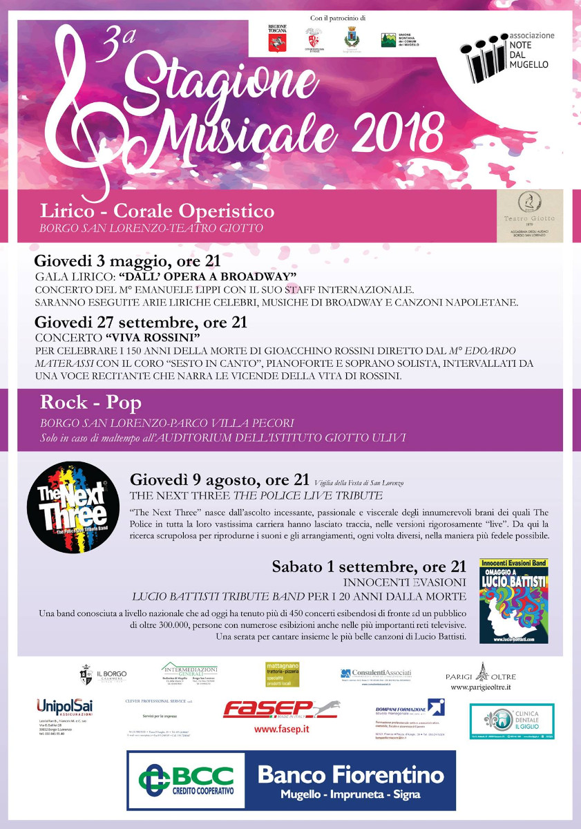 Prosegue la III^ edizione della stagione musicale organizzata dall’Associazione Note dal Mugello con il patrocinio del Comune di Borgo San Lorenzo, protagonisti del terzo appuntamento sarà un concerto omaggio al cantautore e compositore italiano Lucio Battisti – per i 20 anni dalla morte.