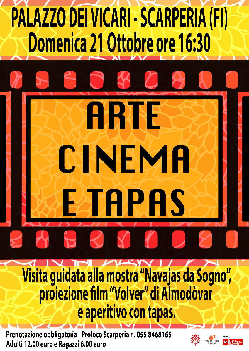 ARTE, CINEMA E TAPAS: Visita guidata alla mostra Navajas da Sogno, proiezione del film Volver del regista spagnolo Almodovar e, in conclusione, Aperitivo con tapas e sangria.