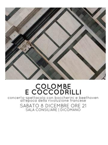 Nell'ambito dell'iniziativa Passaggi festival presenta il concerto-spettacolo "Colombe e coccodrilli" con Boccherini e Beethoven all'epoca della rivoluzione francese.Ingresso gratuito.