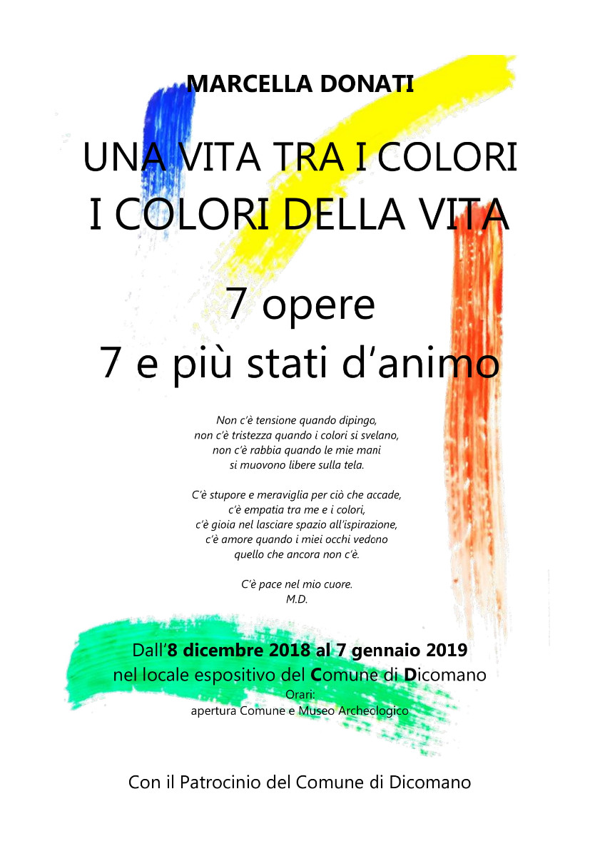 Dal 8/12 al 7/01/19 - UNA VITA TRA I COLORI I COLORI DELLA VITA - Mostra di Marcella Donati