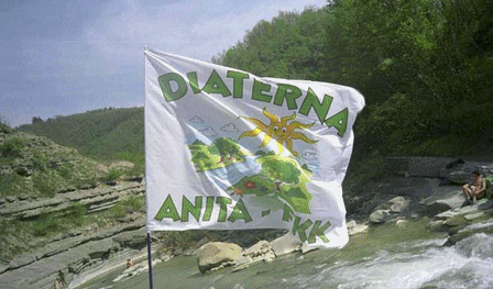 Pulitura del fiume con guanti e buste ecologiche. Musicisti, poeti e cantanti.