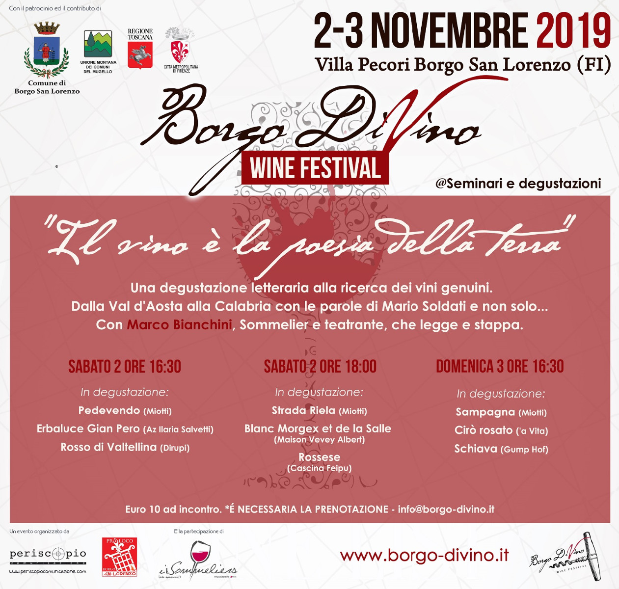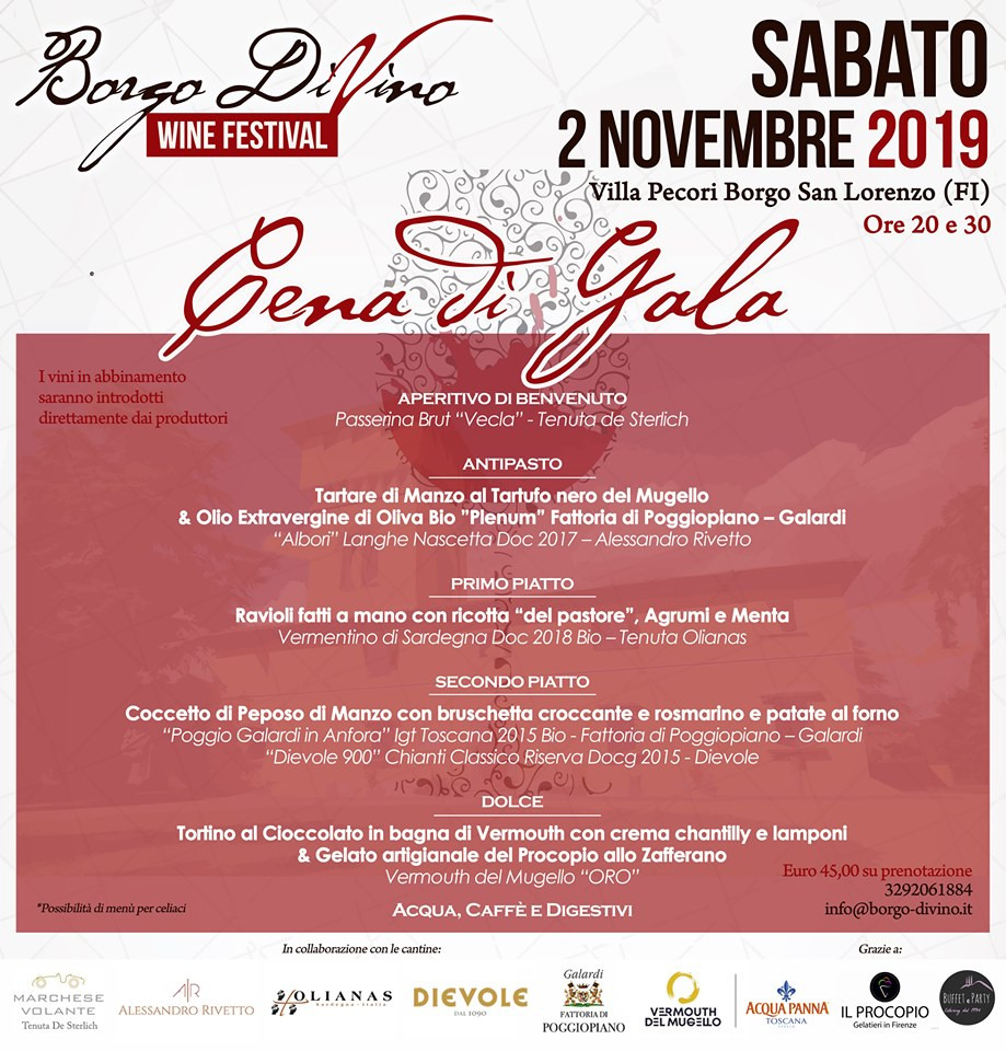 Grande attesa a Borgo San Lorenzo per la seconda edizione del Wine Festival “Borgo Divino” che dopo il successo della prima edizione, torna in questo ponte dei Santi ed in particolare sabato 2 e domenica 3 novembre. Villa Pecori Giraldi, la splendida Villa icona internazionale dello stile liberty, si sta rifacendo il trucco per essere teatro speciale di un evento che darà la possibilità alle 55 aziende vinicole provenienti da tutta Italia di presentare le circa 250 etichette che i visitatori potranno degustare in un suggestivo giro d’Italia, dal Trentino alla Sicilia.