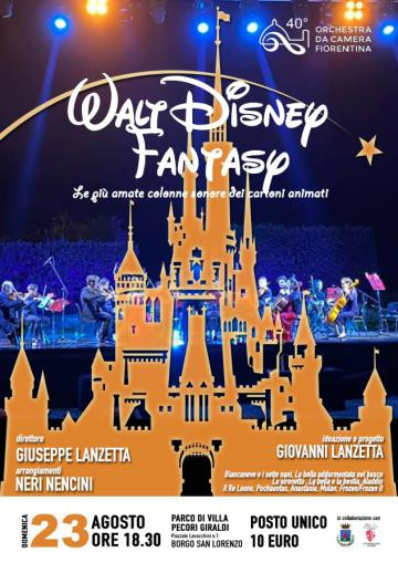 Domenica 23 agosto alle ore 18:30 a Villa Pecori Giraldi si terrà il concerto Walt Disney Fantasy, organizzato dall’Orchestra da Camera Fiorentina in collaborazione col Comune e la Città Metropolitana di Firenze. Verranno eseguite dal vivo le più belle e amate colonne sonore dei film Disney: