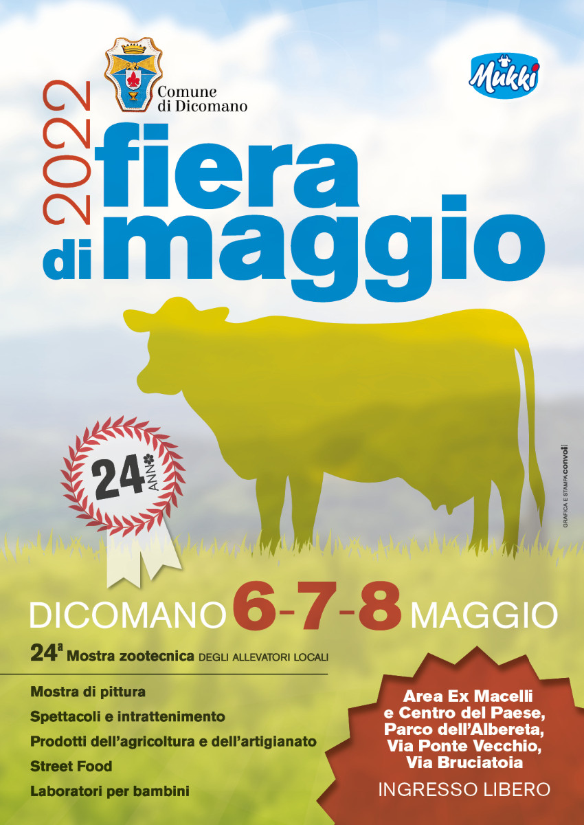 Torna finalmente, dal 6 all’8 maggio, l’appuntamento con la Fiera di Maggio di Dicomano e lo fa con una 24esima edizione della mostra zootecnica degli allevatori locali che propone tante novità a partire da un percorso che porterà i visitatori a scoprire il centro del paese in un susseguirsi di prodotti locali, artigianato, arte, spettacoli, street food e divertimento.