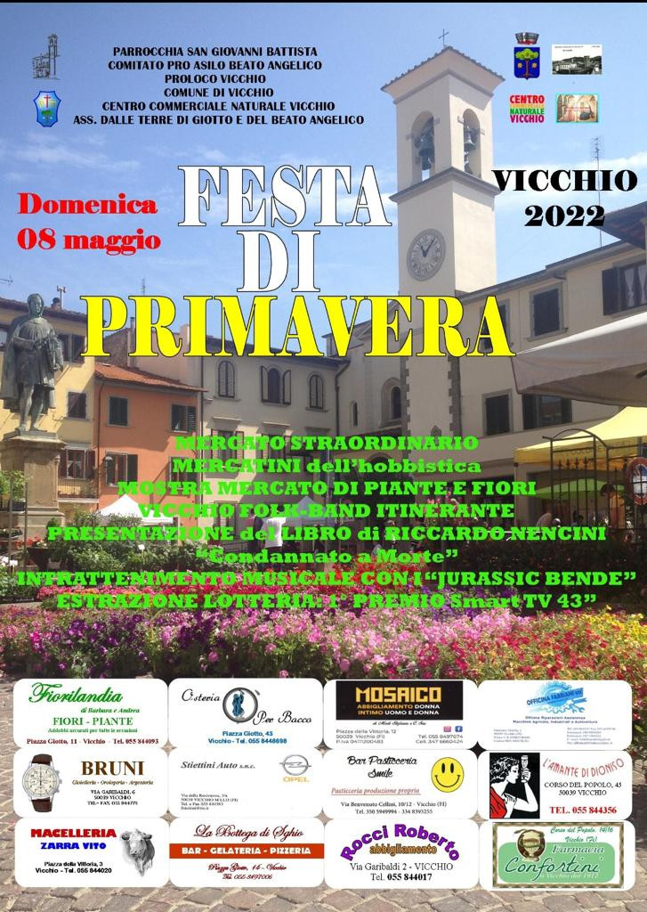 La Parrocchia di San Giovanni Battista, il Comitato pro asilo Beato Angelico, la Pro Loco, il Comune, il Centro Commerciale Naturale, l'Associazione Dalle terre di Giotto e dell'Angelico organizzano per domenica 8 maggio la "Festa di Primavera" con: