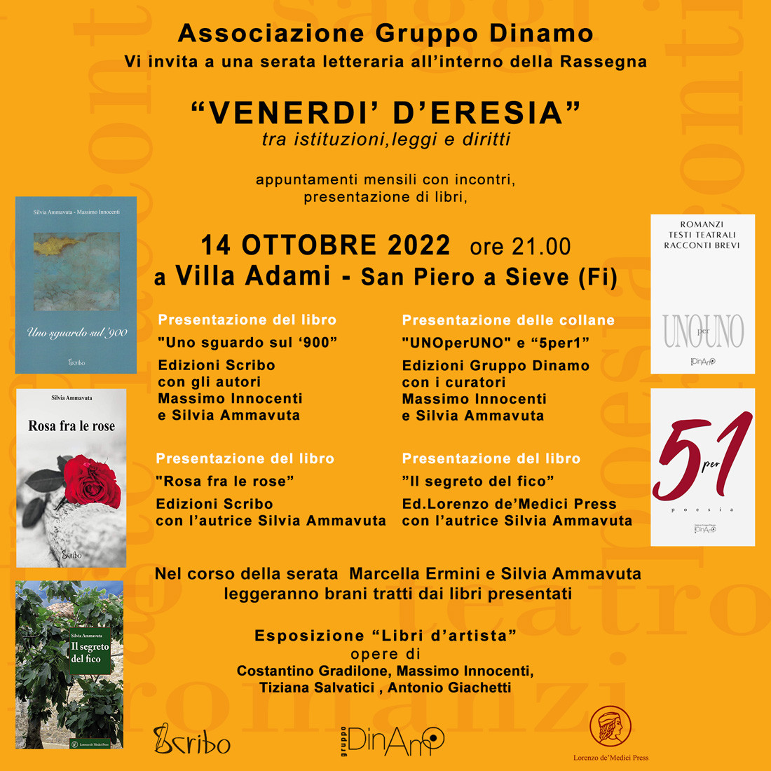 Il gruppo Dinamo vi invita a partecipare alla serata letteraria chiamata "venerdì d'eresia" alle ore 21:00 nella location di Villa Adami a San Piero a Sieve.