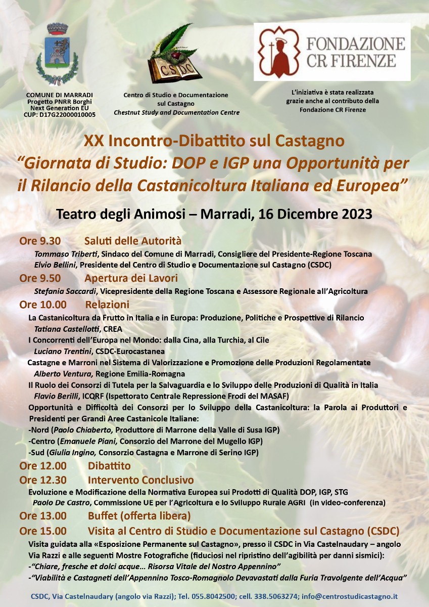 Giornata di Studio: DOP e IGP una Opportunità per il Rilancio della Castanicoltura Italiana ed Europea