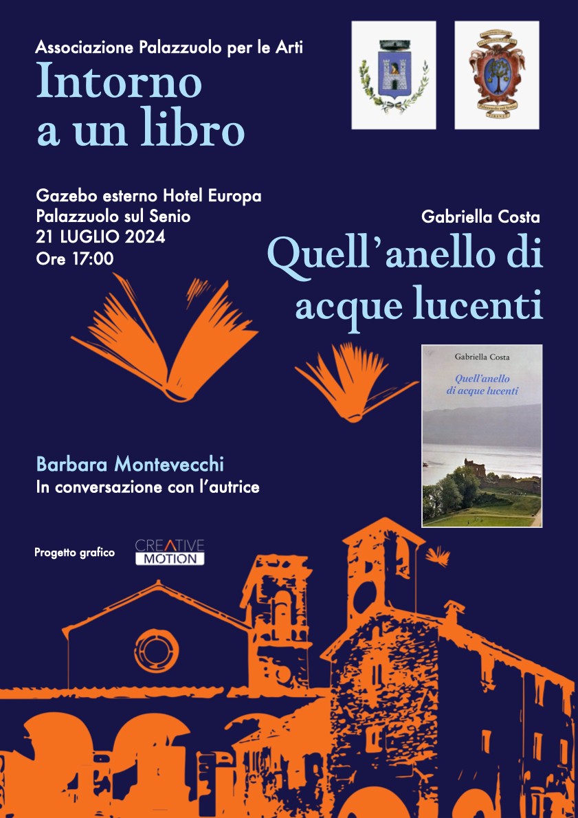 - Domenica 21 luglio 2024 alle ore 17 presso il Gazebo Esterno dell'Hotel Europa presentazione del libro di Gabriella Costa "Quell'anello d'acque lucenti"