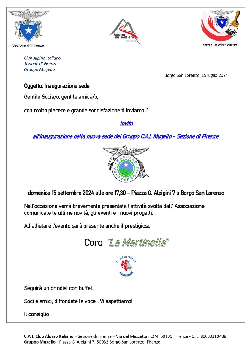 Inaugurazione della nuova sede del Gruppo C.A.I. Mugello - Sezione di Firenze