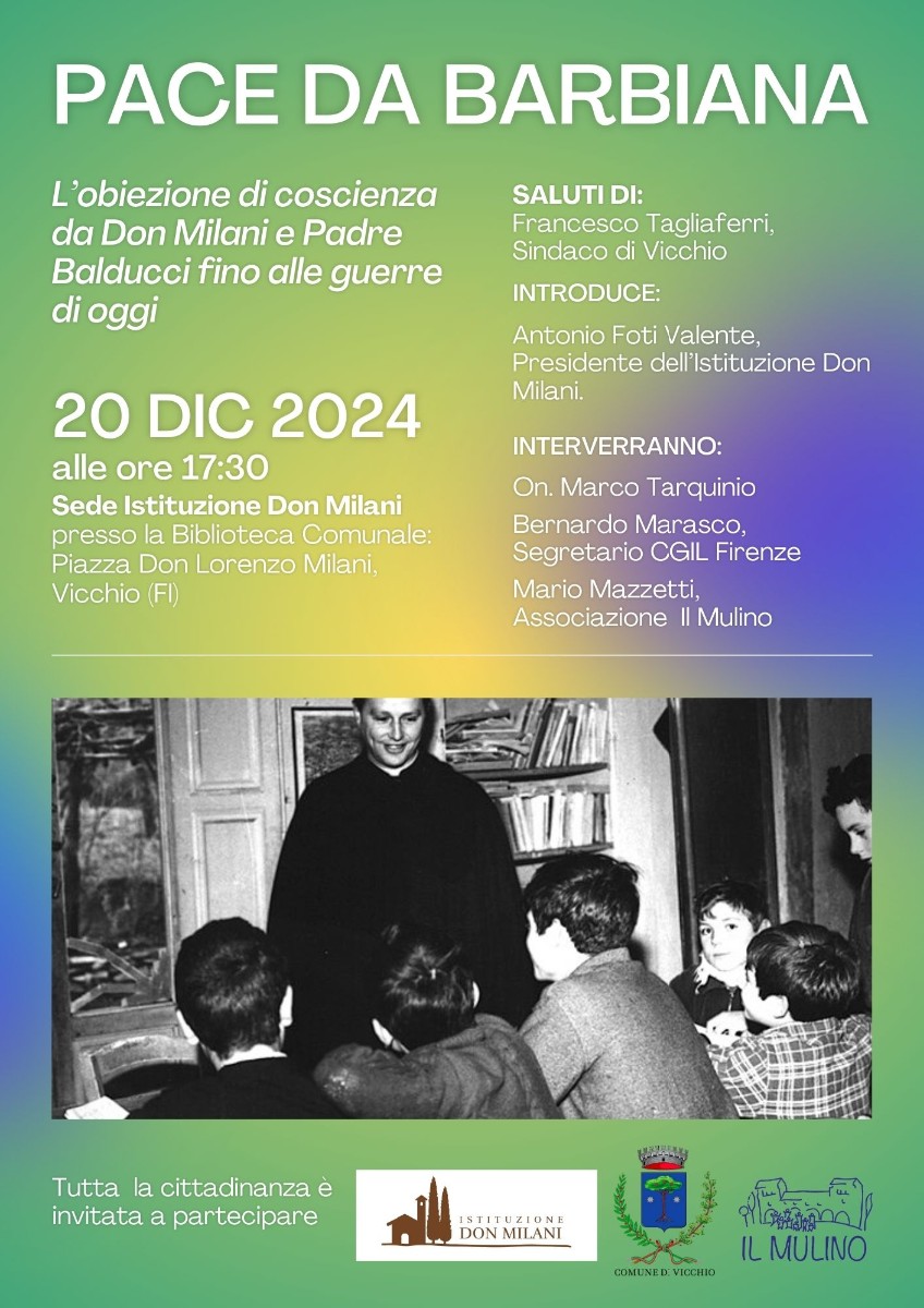 Una riflessione che si svilupperà dal tema “L’obiezione di coscienza da Don Milani e Padre Balducci fino alle guerre di oggi”.