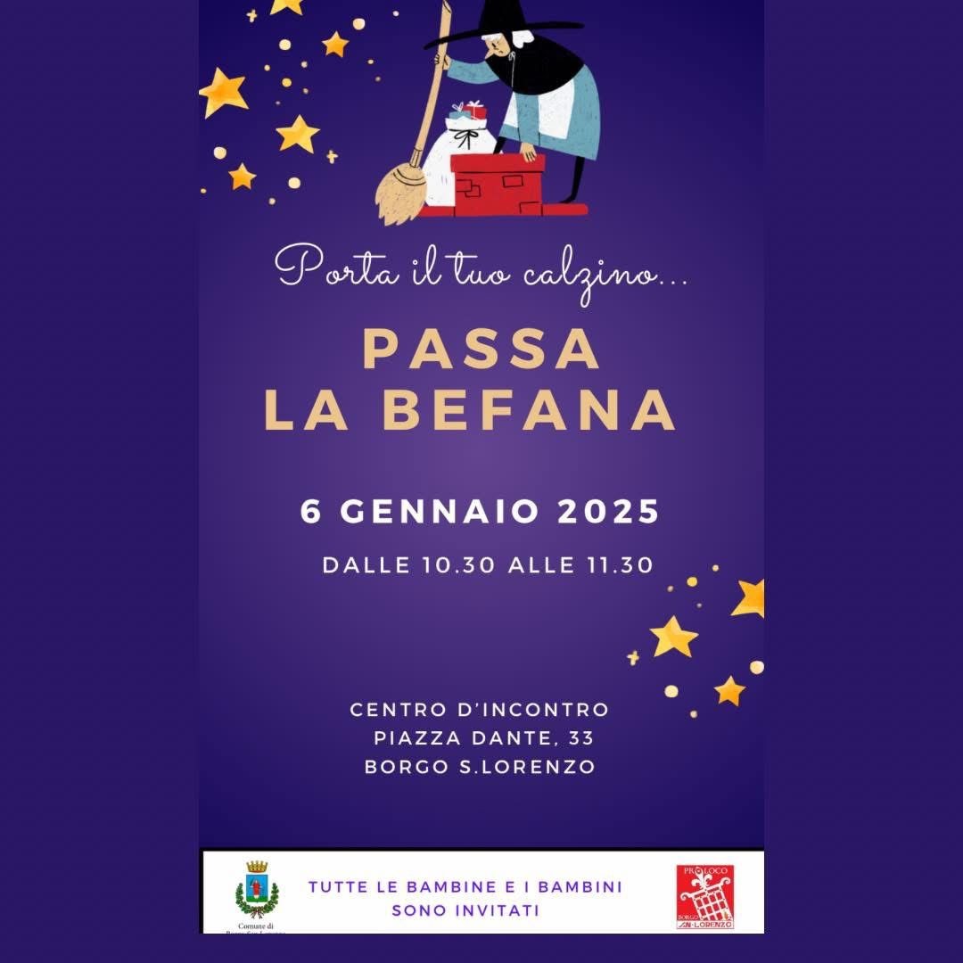 L'amministrazione comunale e ProLoco Borgo San Lorenzo invitano tutte le bambine e tutti i bambini di Borgo San Lorenzo all'iniziativa " Porta il tuo calzino: passa la Befana!"