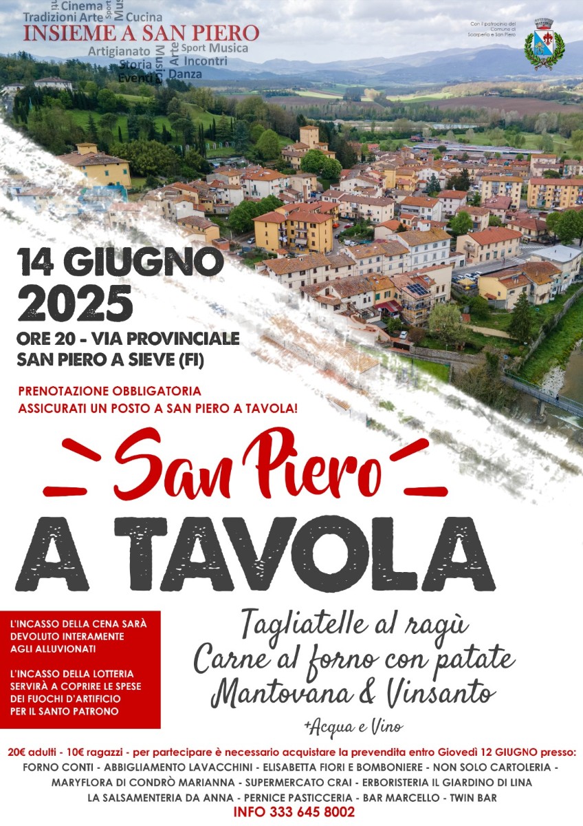 "San Piero a Tavola" si terrà sabato 14 giugno 2025 alle ore 20:00 in Via Provinciale a San Piero a Sieve (FI).